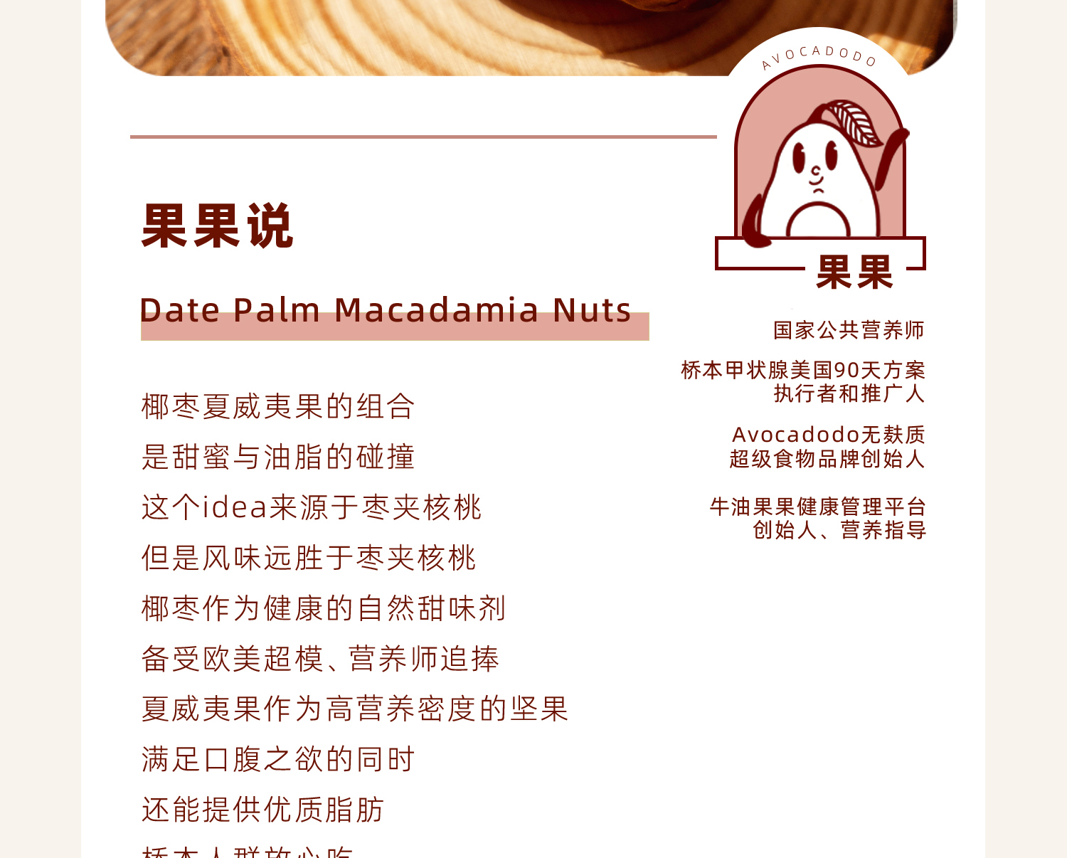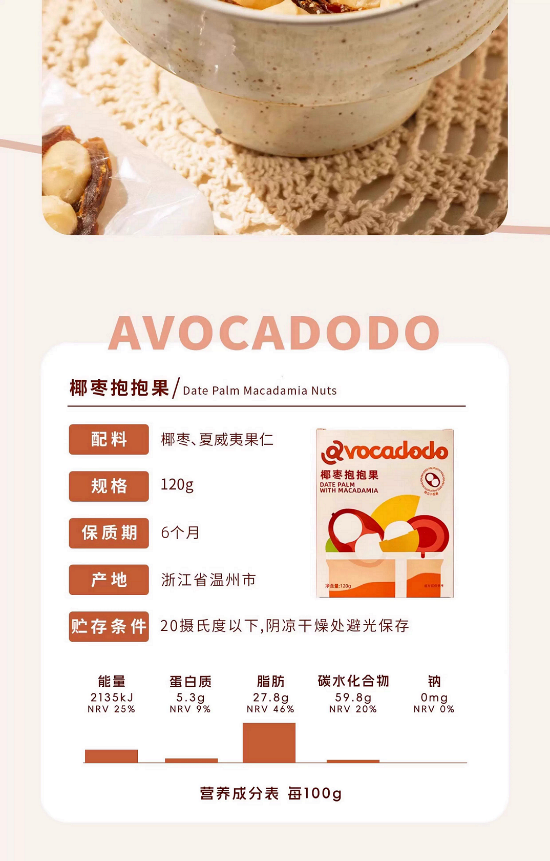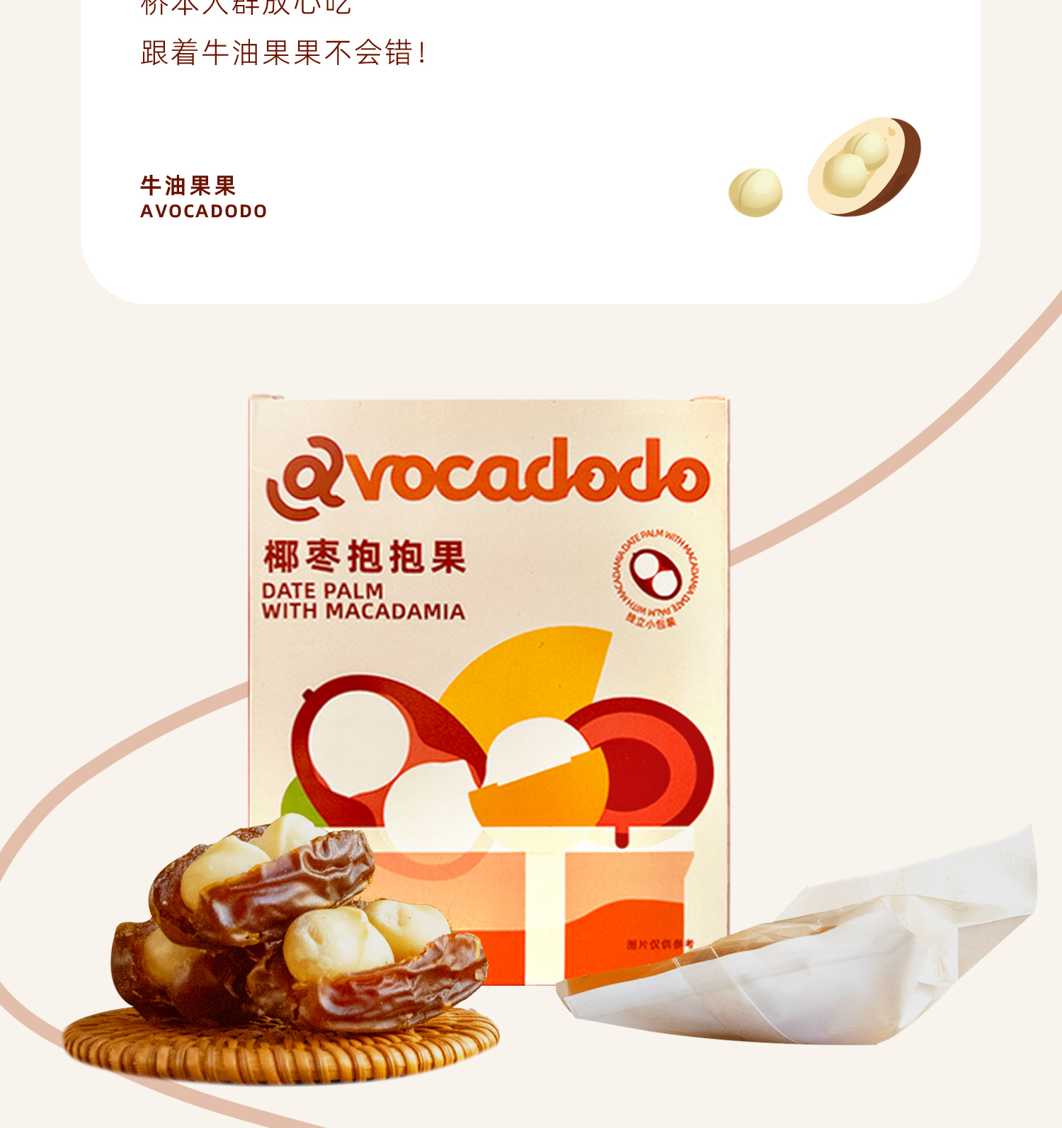 Avocadodo椰枣抱抱果夏威夷果大颗微甜糯坚果儿童零食独立小包装