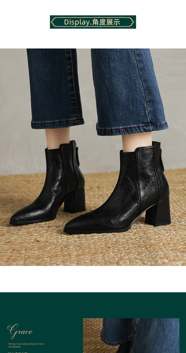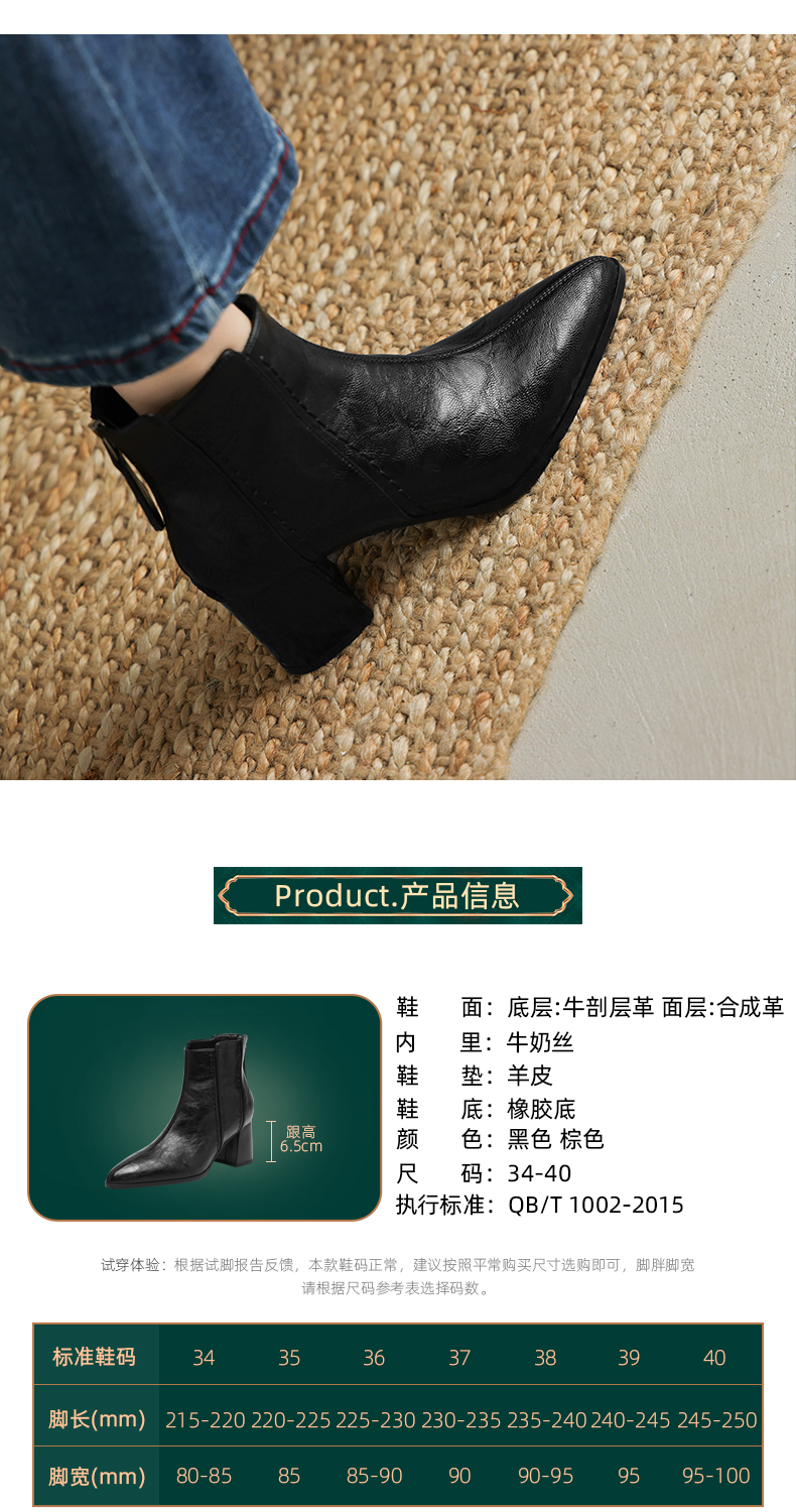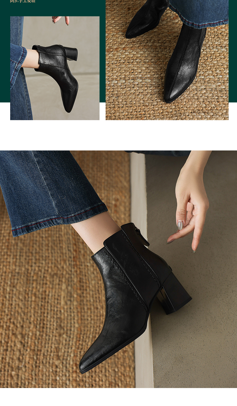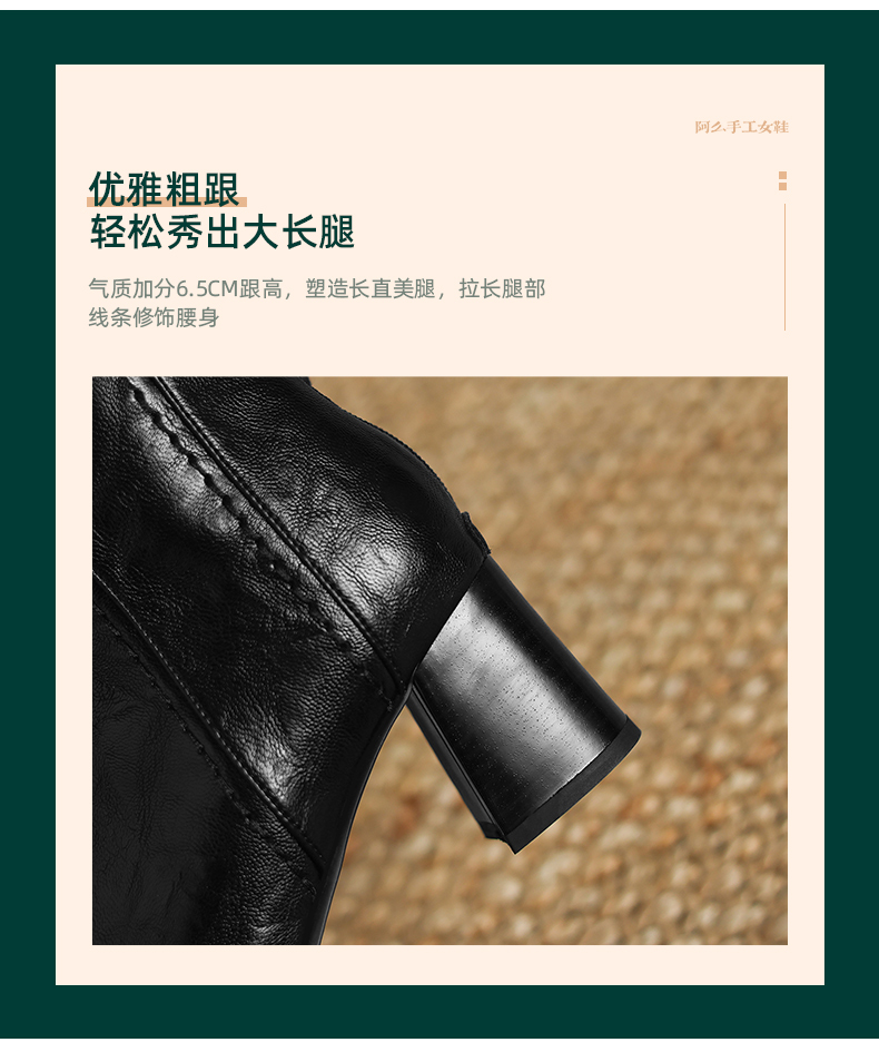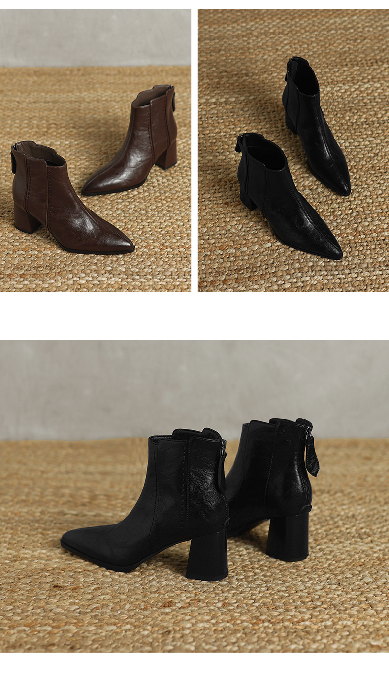 阿么手工女鞋复古尖头高跟短靴2025新款真皮棕色美式西部靴6.5CM