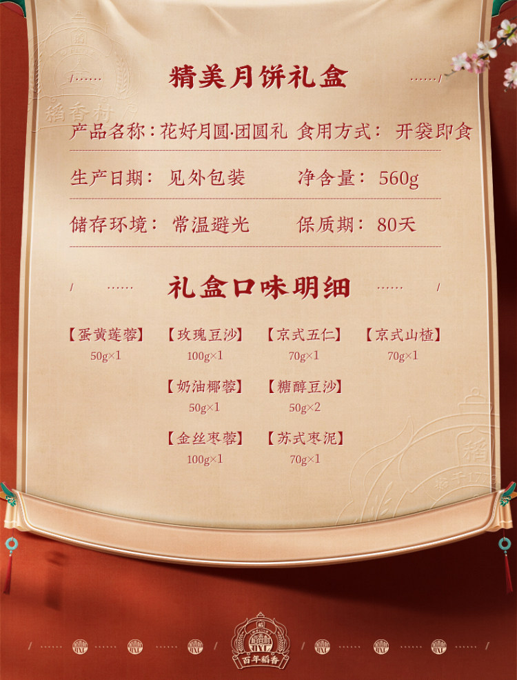 稻香村花好月圆团圆礼月饼礼盒560g【LY】