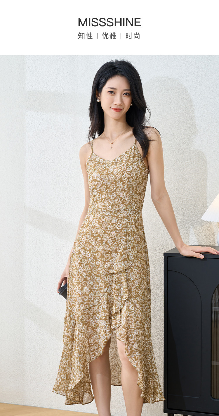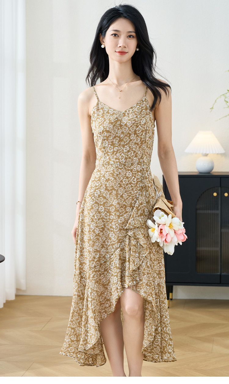 剩S/M/L/XL 【印花吊带裙】时尚度假风荷叶大摆连衣裙1105
