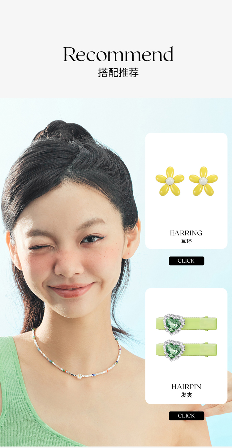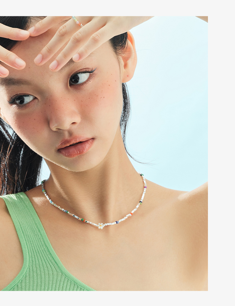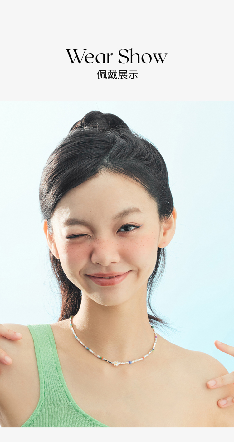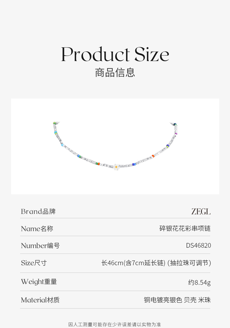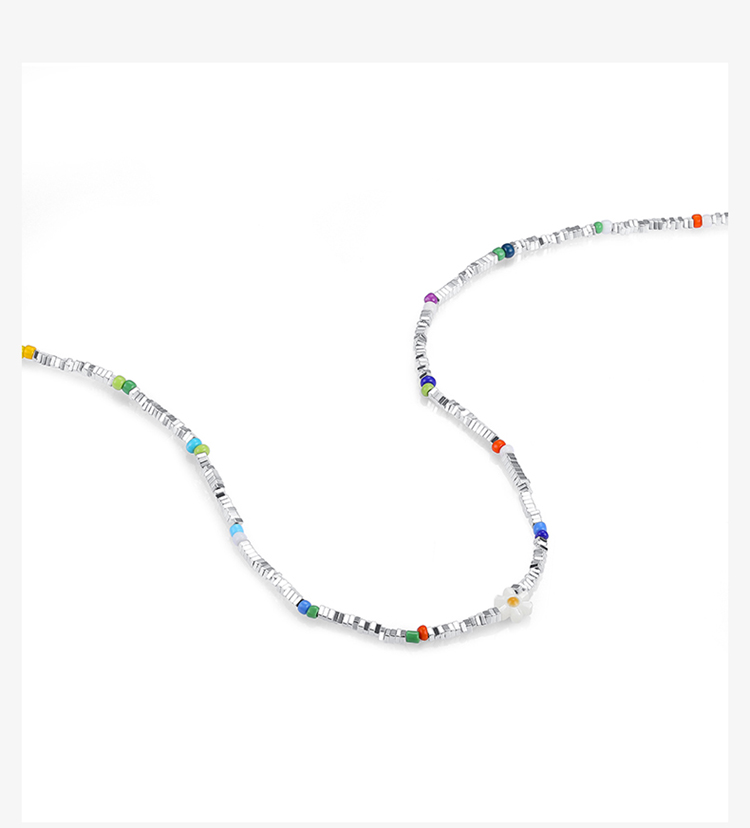 ZEGL彩色花朵串珠碎银子项链女生轻奢小众碎银几两森系夏天多巴胺穿搭锁骨链