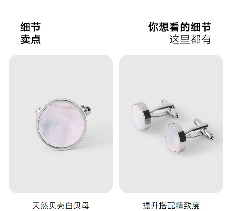 GXG热卖袖扣天然贝壳白贝母轻奢男高档衬衫袖钉