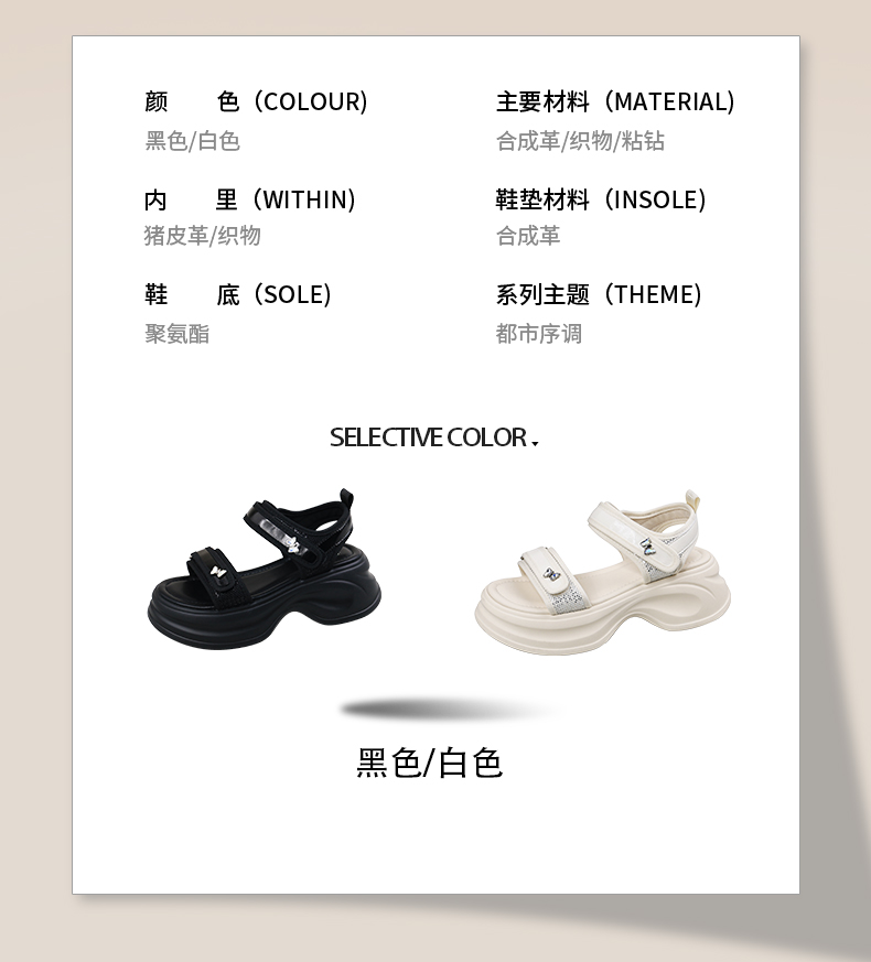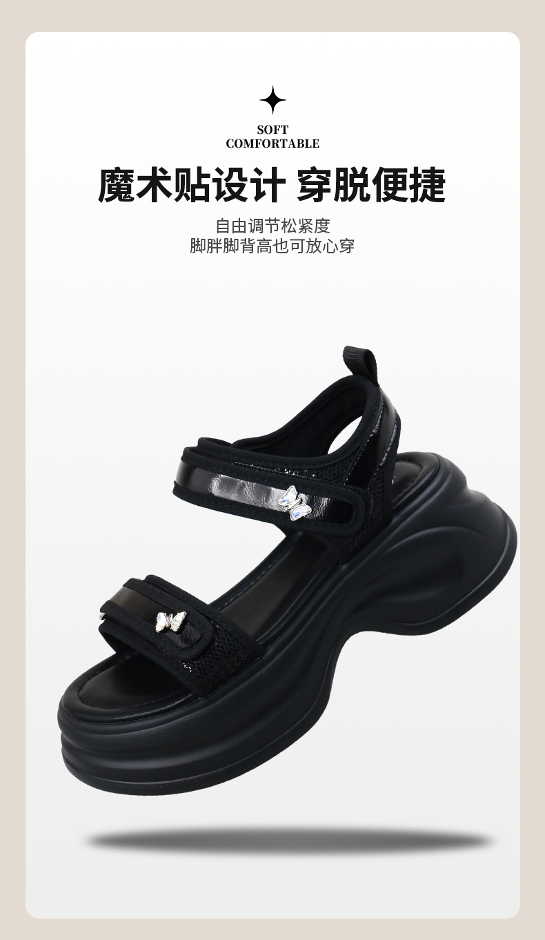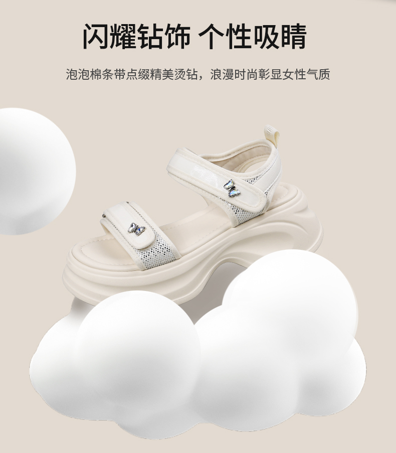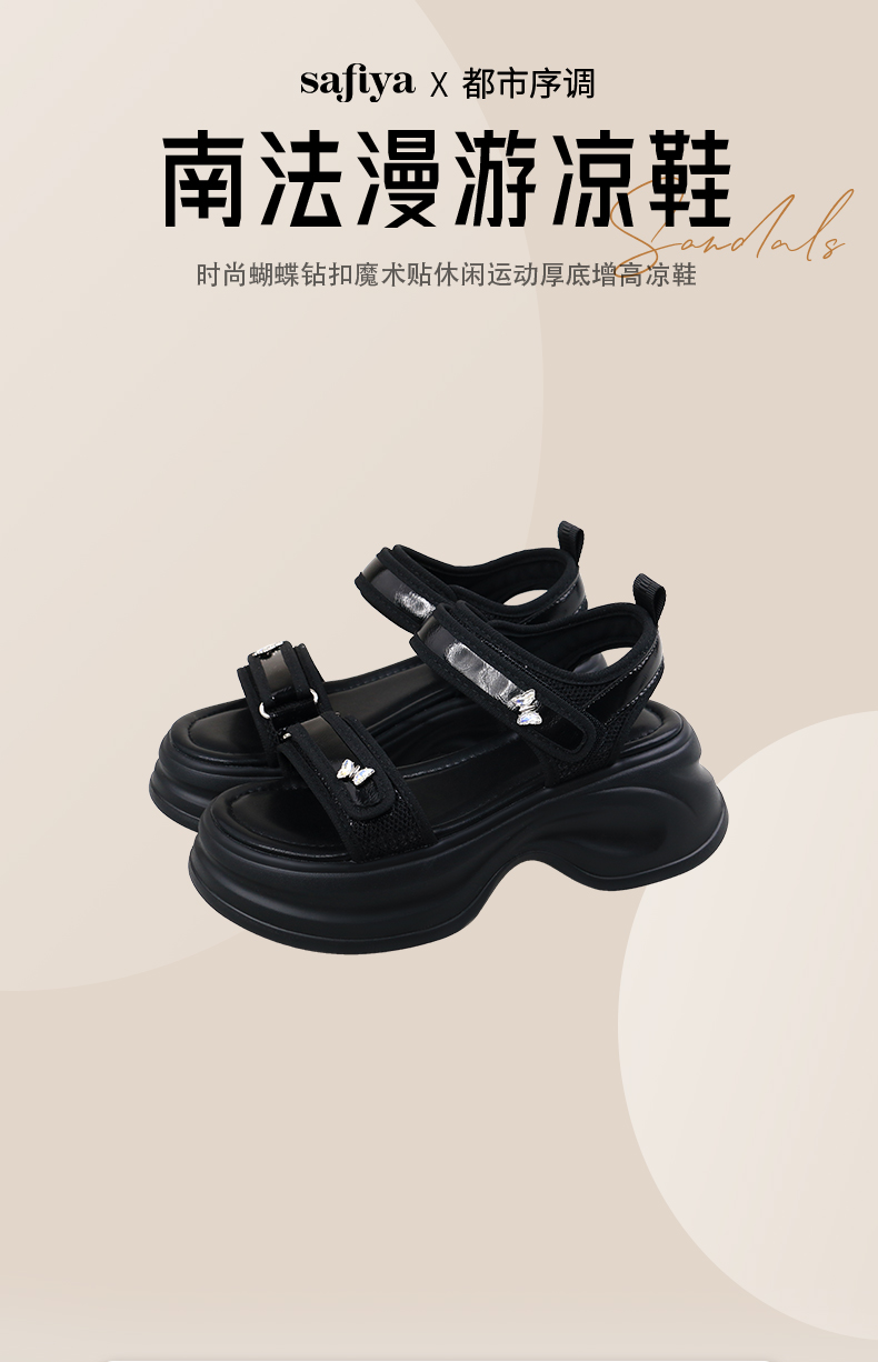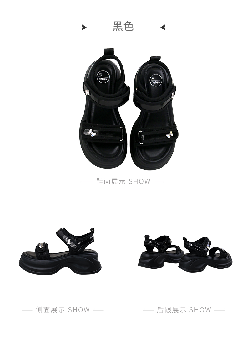 Safiya/索菲娅2025时尚蝴蝶钻扣魔术贴休闲运动厚底增高凉鞋SFD2115374