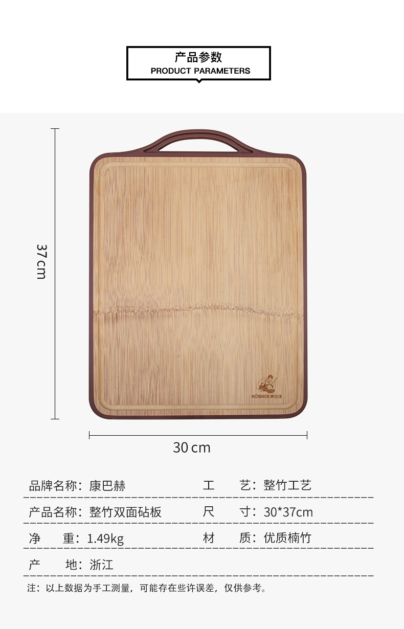 【双面可用/加厚整竹】康巴赫 新款整竹菜板 KCB30A2JPY带授权招加盟代理
