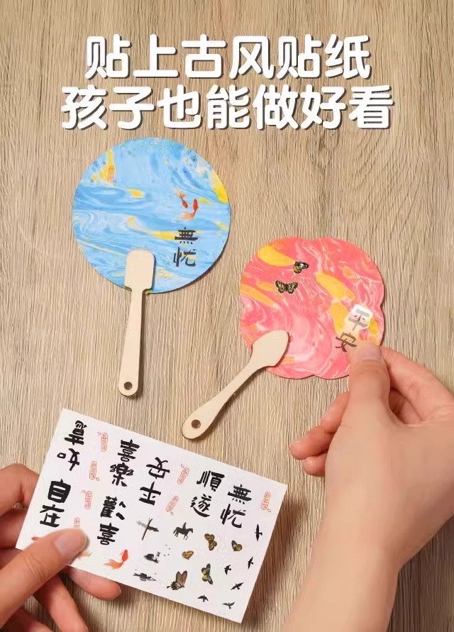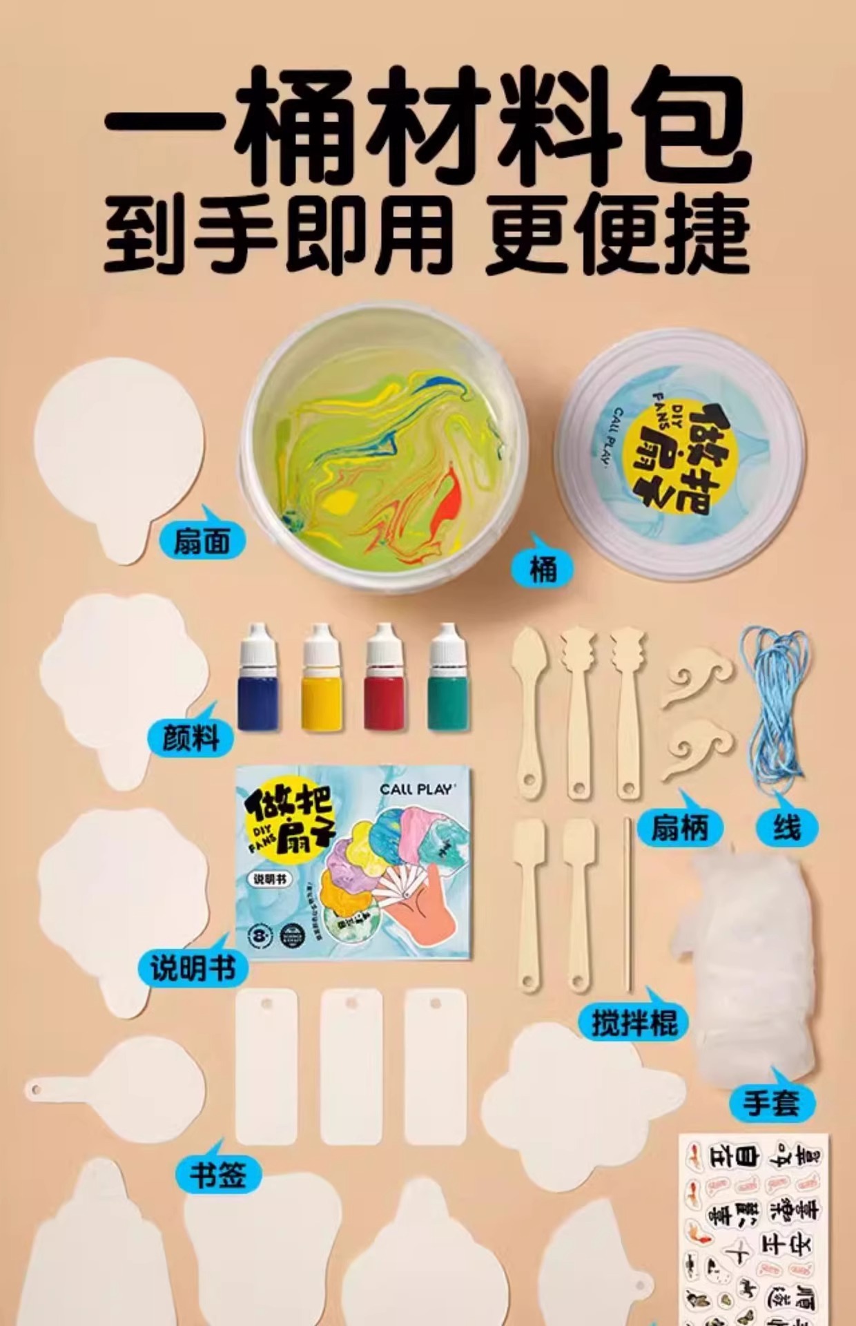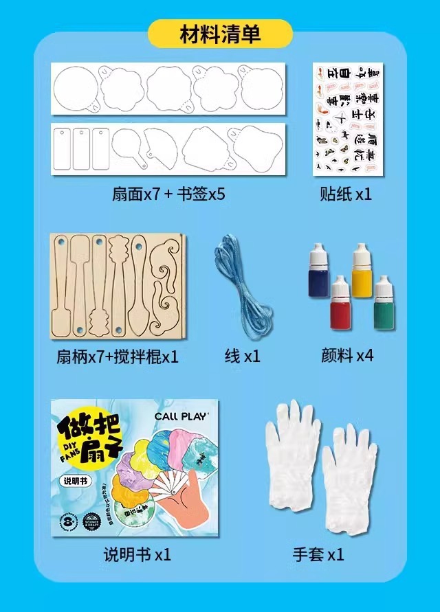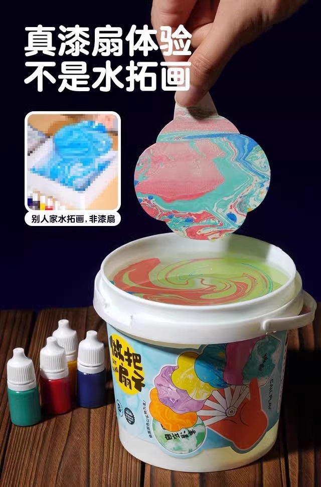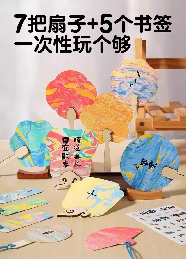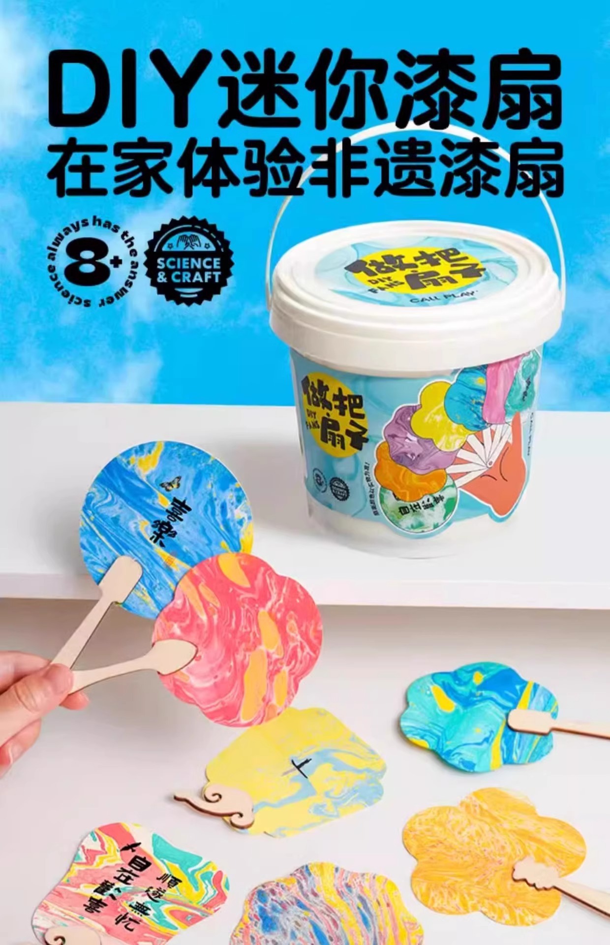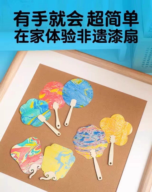 【可做7把小扇子】科答鸭儿童迷你漆扇专用材料包 非遗手工diy漂漆颜料古风扇子