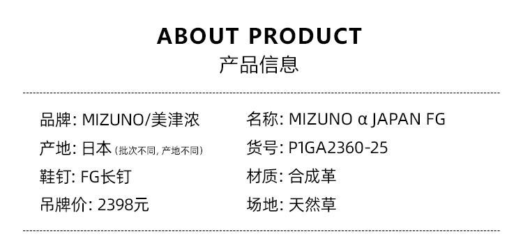 SFS 美津浓Mizuno 阿尔法α日产高端FG长钉天然草成人足球鞋男