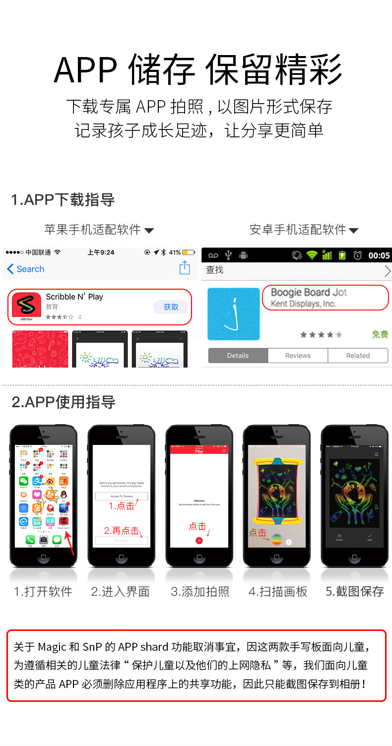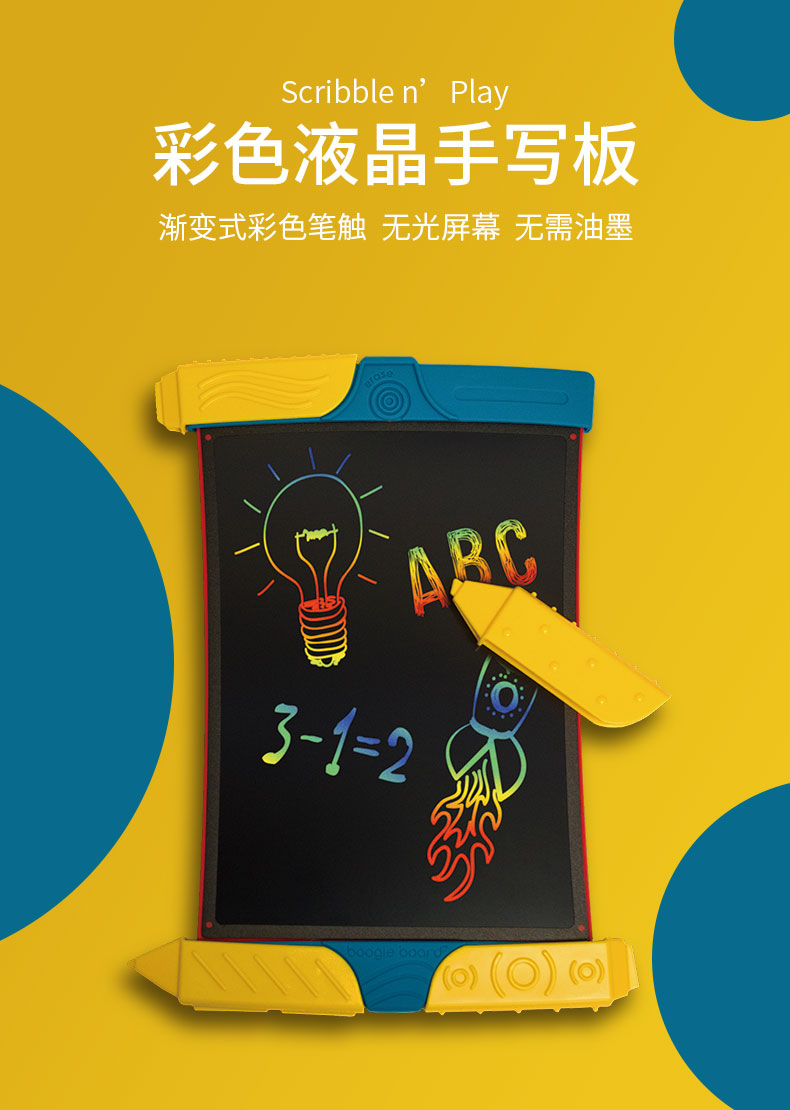 美国BoogieBoard儿童电子手写板彩虹色手绘板Scribble液晶手写板