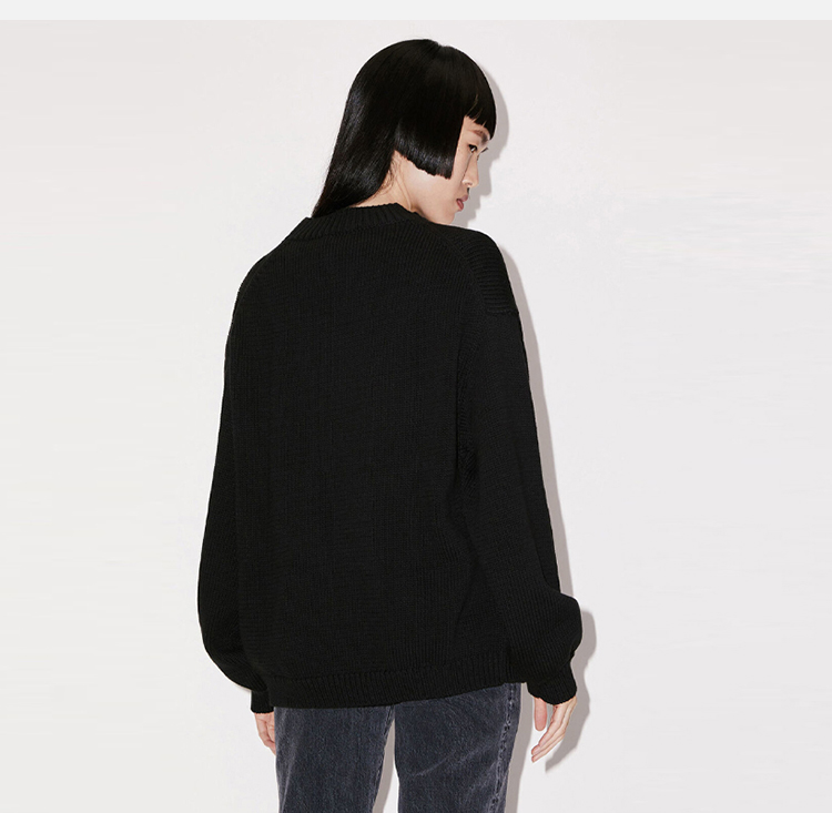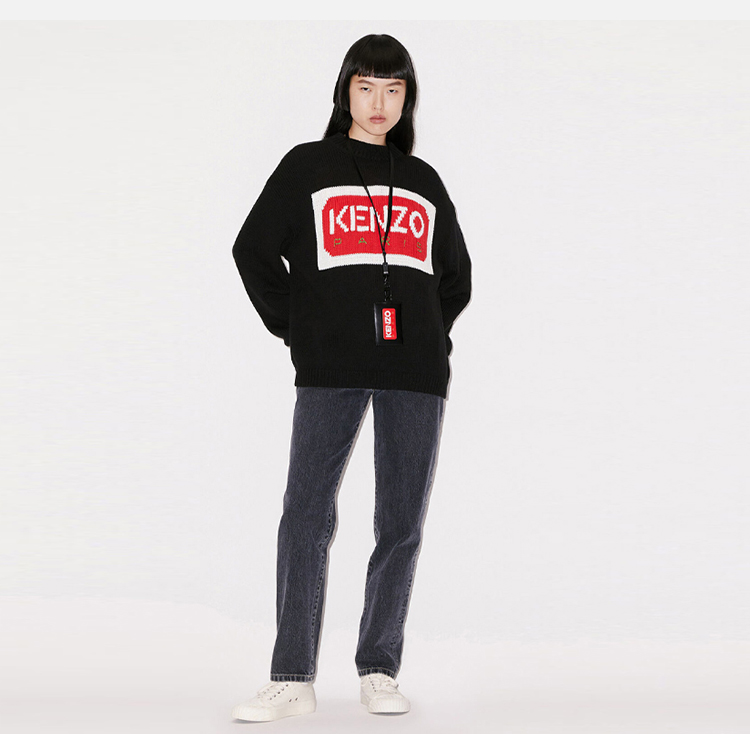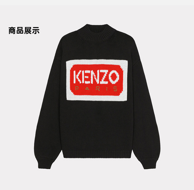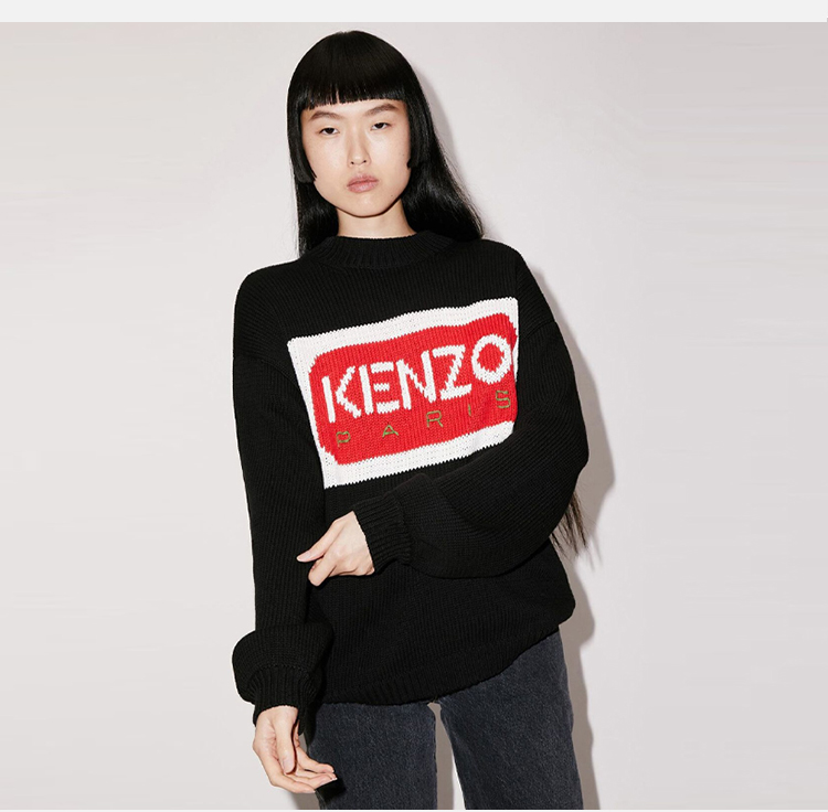 KENZO 高田贤三 女士棉质字母徽标嵌花长袖针织衫 黑色 FD52 PU385 3LA 99J
