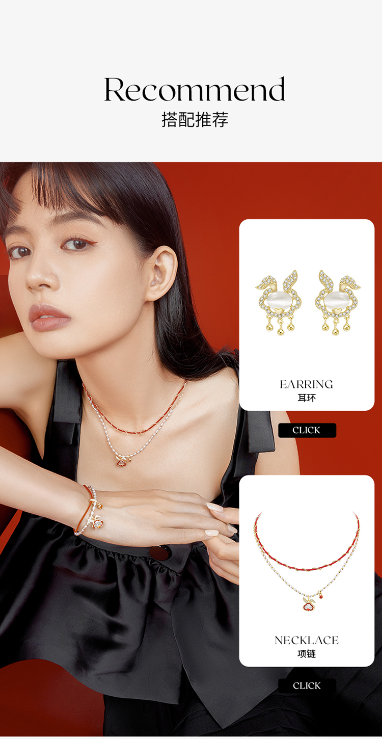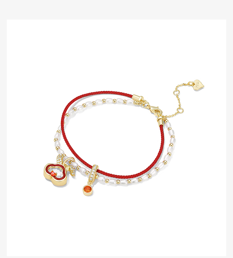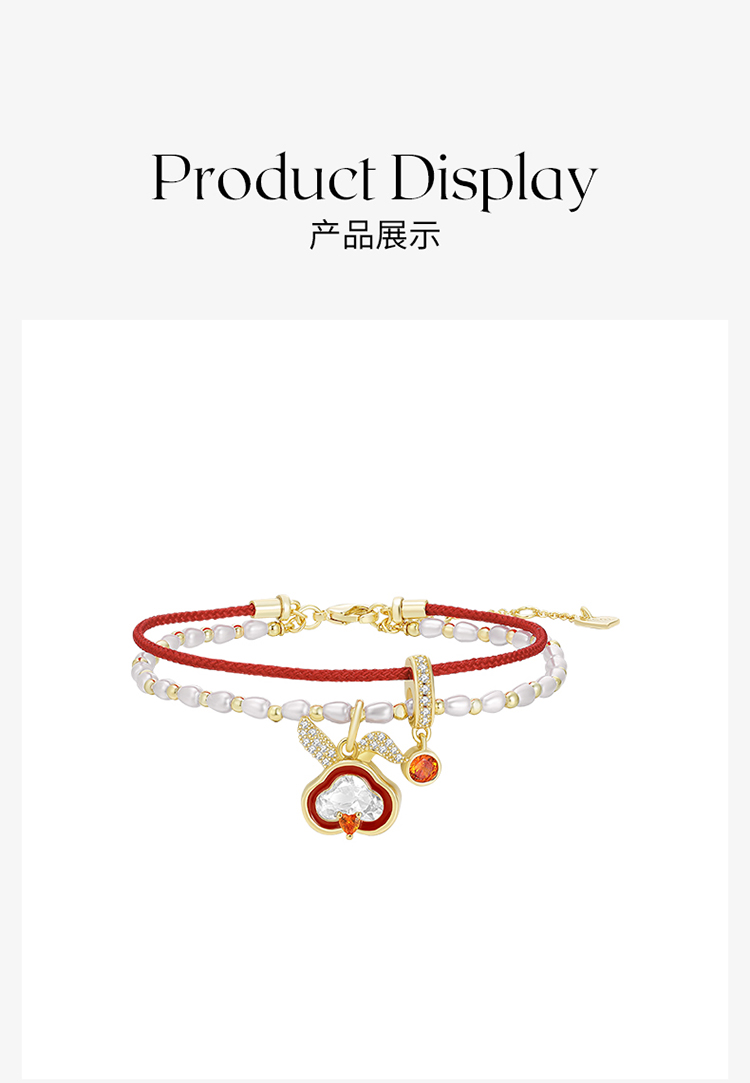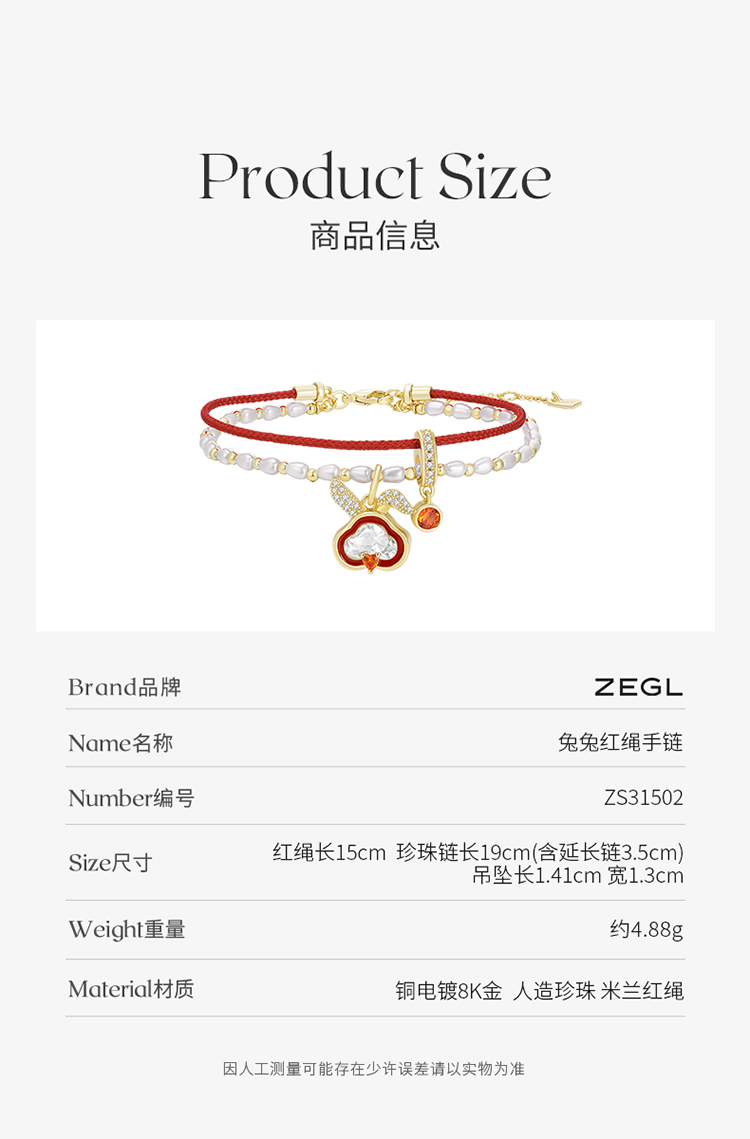 ZEGL设计师本命年系列如意兔子红绳手链女双层手绳人造珍珠手饰品