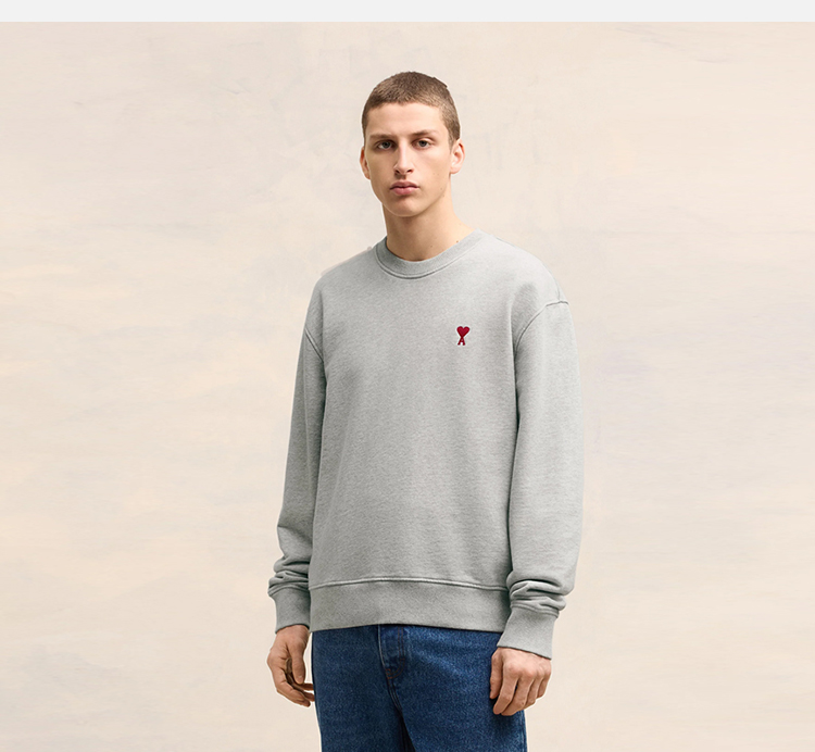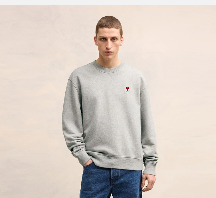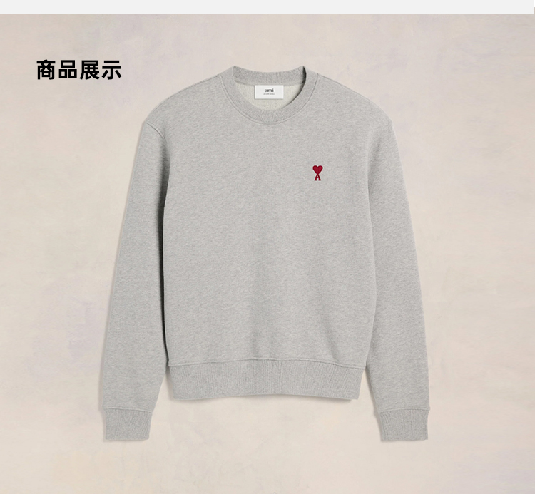 AMI 男士徽标刺绣棉质运动卫衣 灰色 BFUSW001 730 055