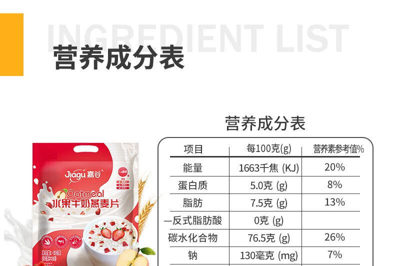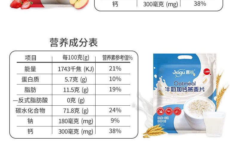 嘉谷(Jiagu)水果牛奶燕麦片480g袋装 冲饮谷物 即食早餐营养代餐 水果牛奶燕麦片480g袋装