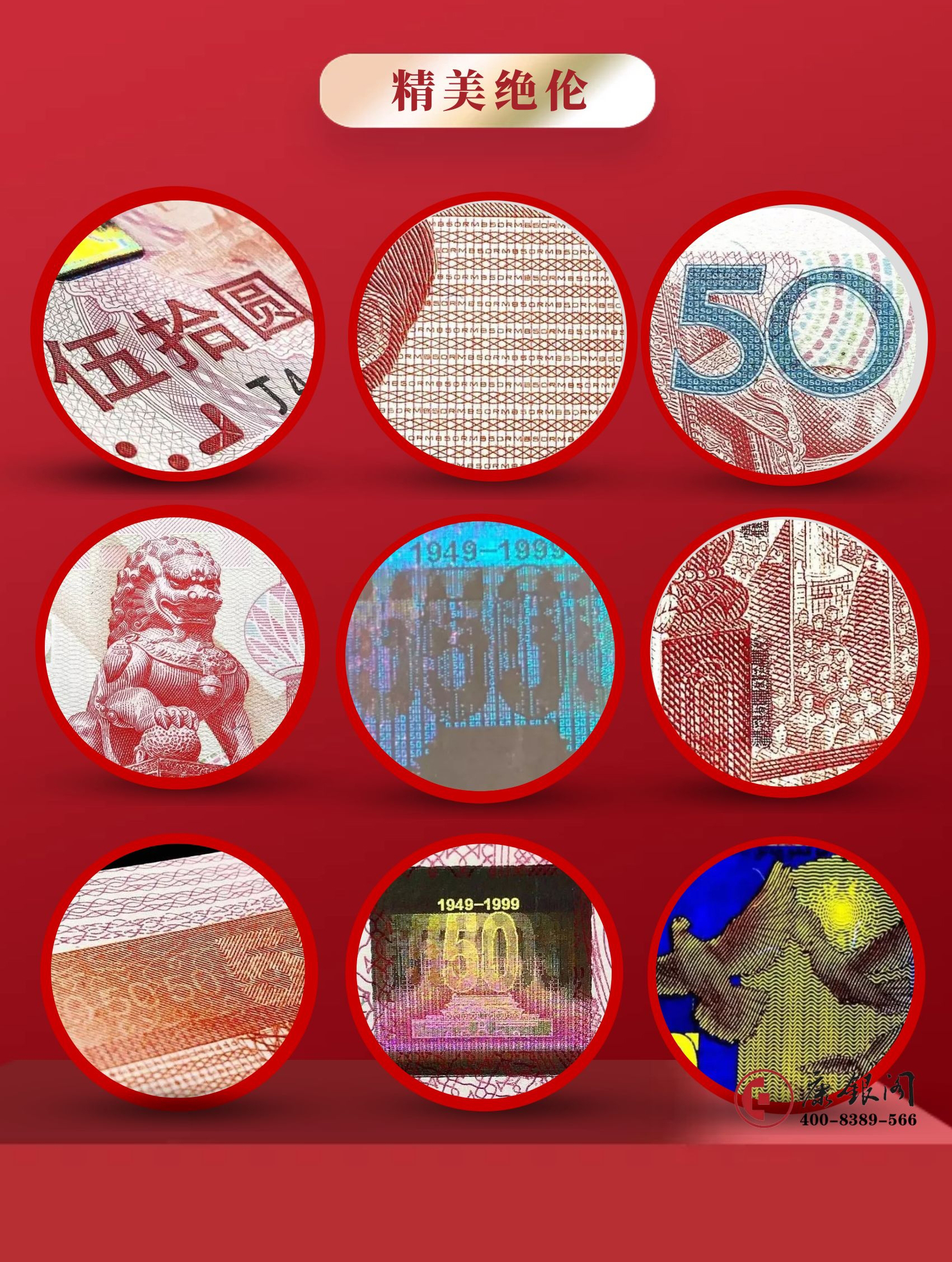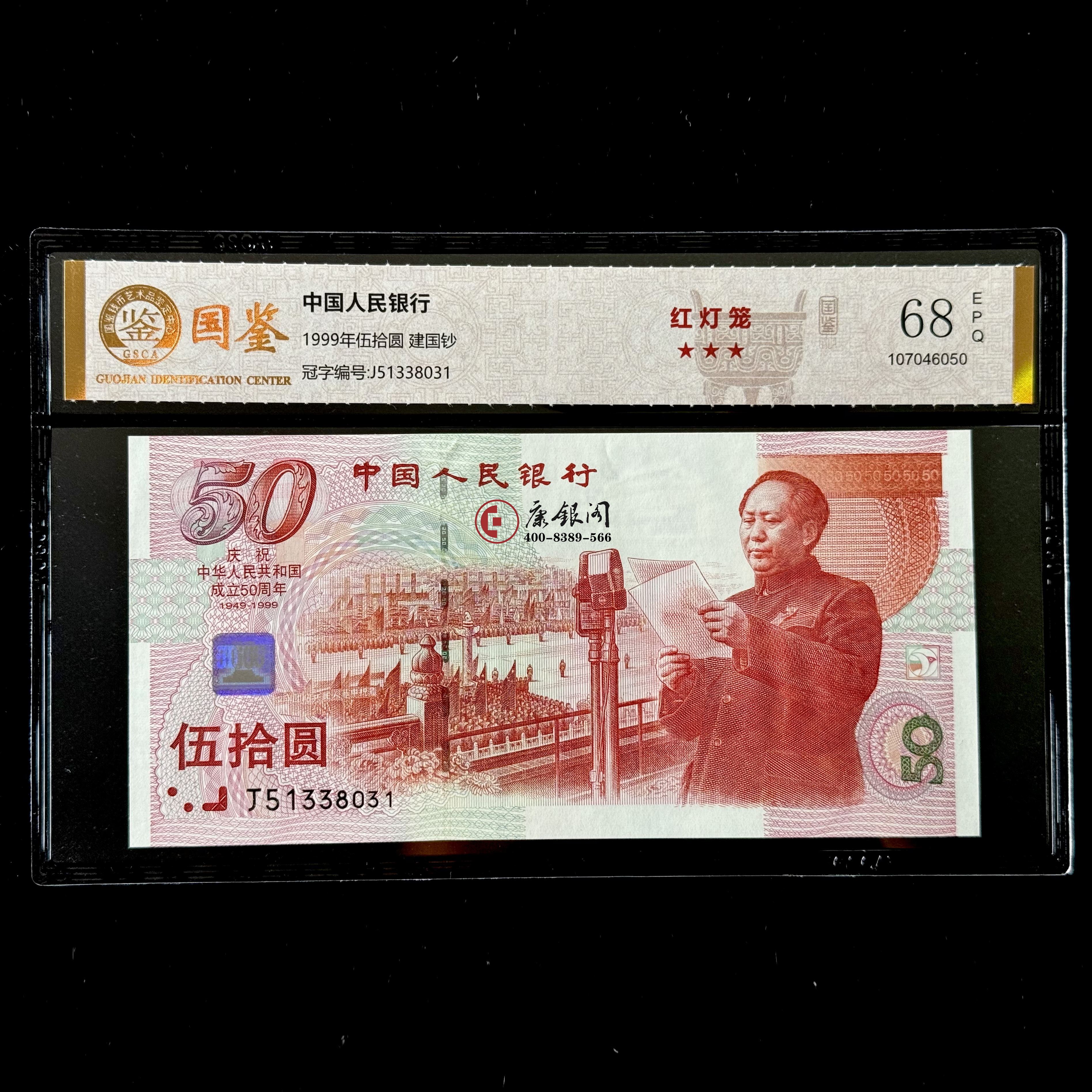 评级版《建国钞-红灯笼荧光版》(全程无47)建国50周年纪念钞