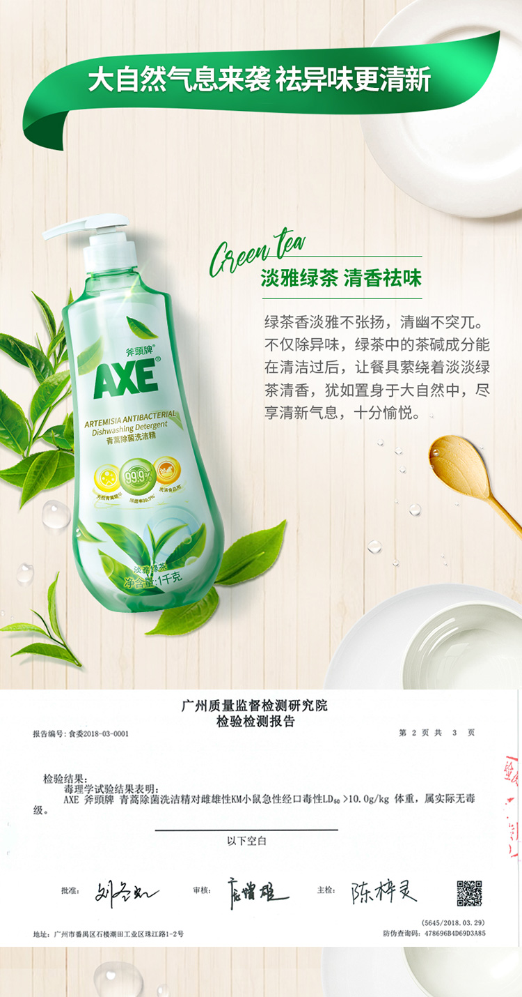AXE青蒿除菌(淡雅绿茶)洗洁精1kg