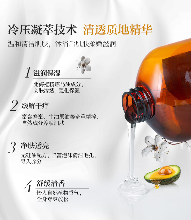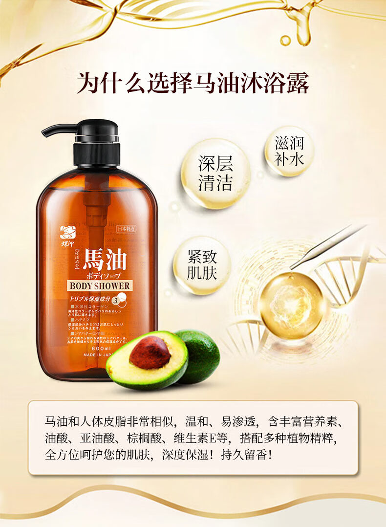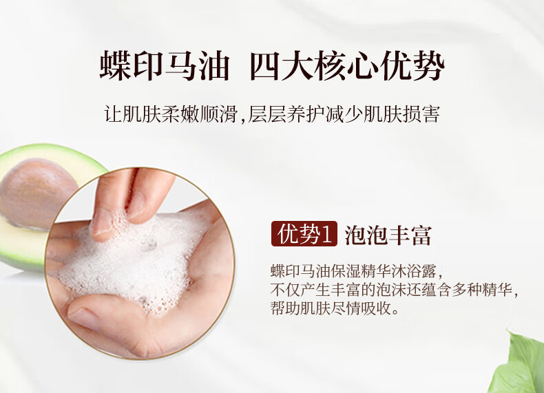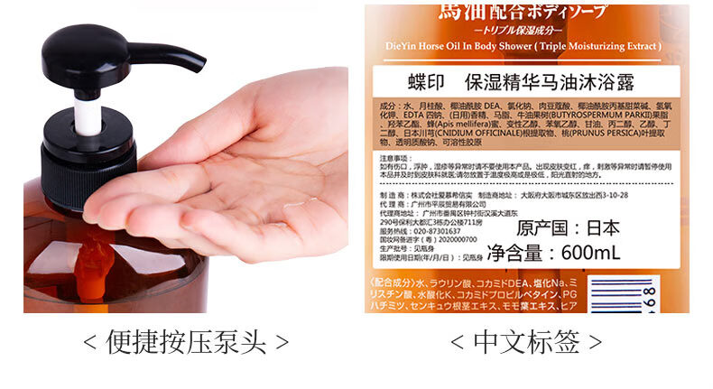 【分仓直发包邮】蝶印保湿精华马油沐浴露600ml