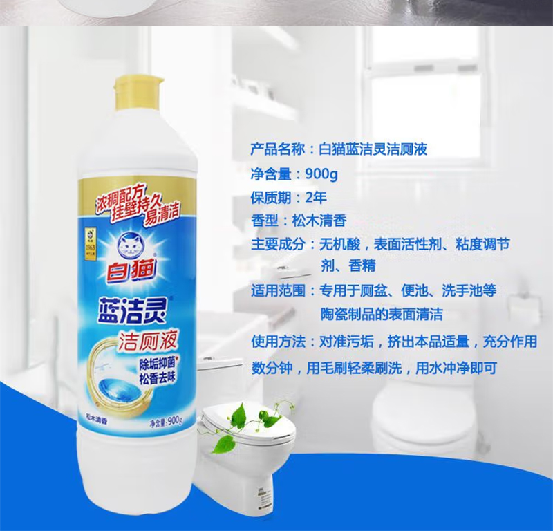 白猫蓝洁灵金装圆瓶洁厕液900G*2瓶