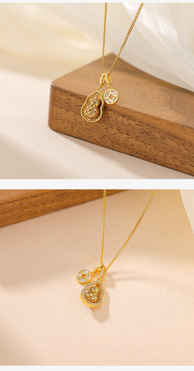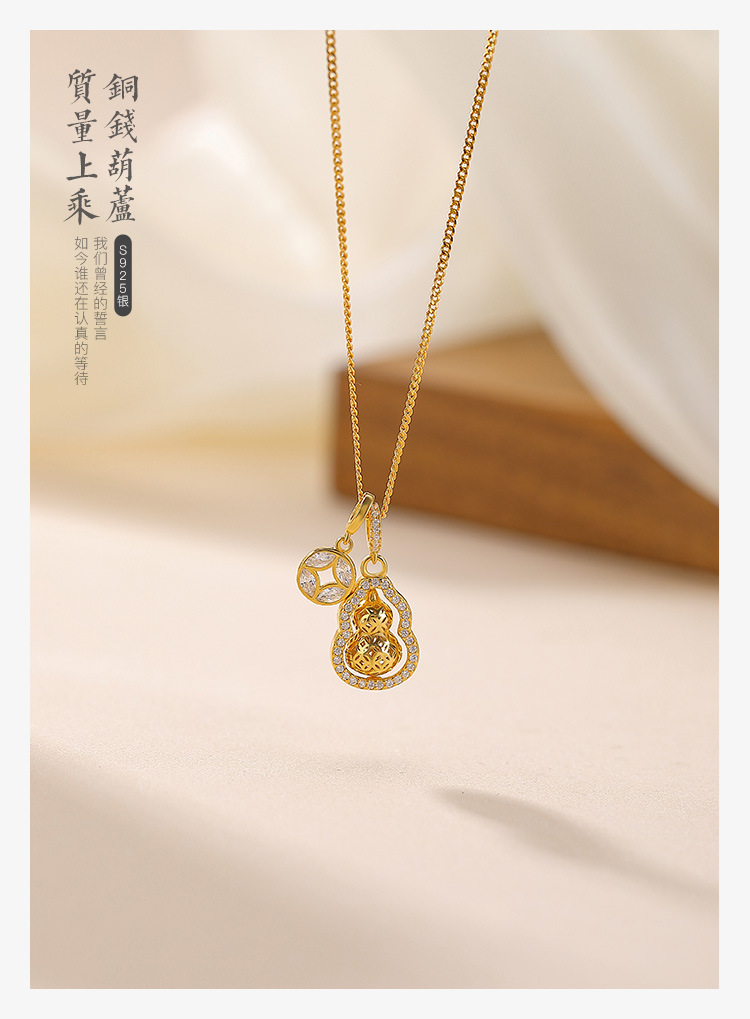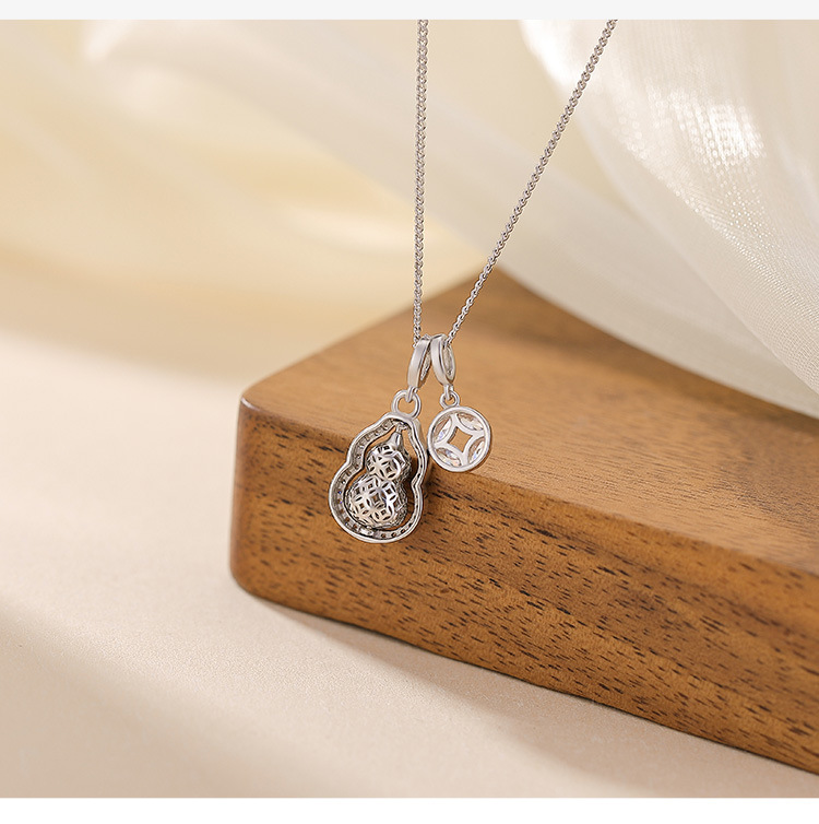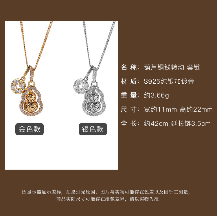 【福禄转运】S925纯银镂空葫芦福禄铜钱钱币可转动套链【CW-XL00440】