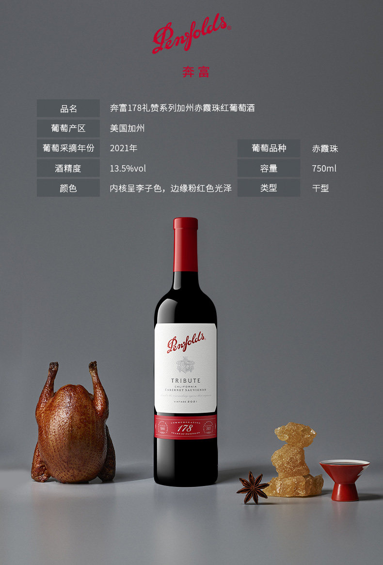 奔富178限量版礼赞加州赤霞珠红葡萄酒750ml