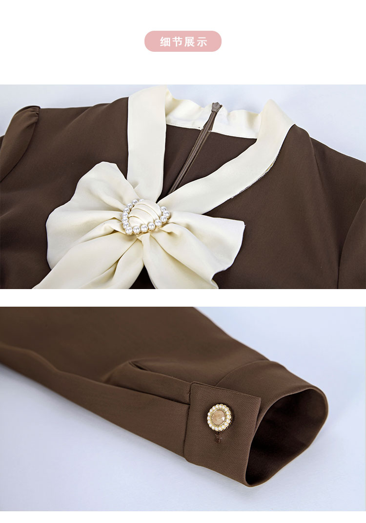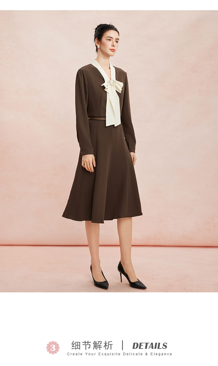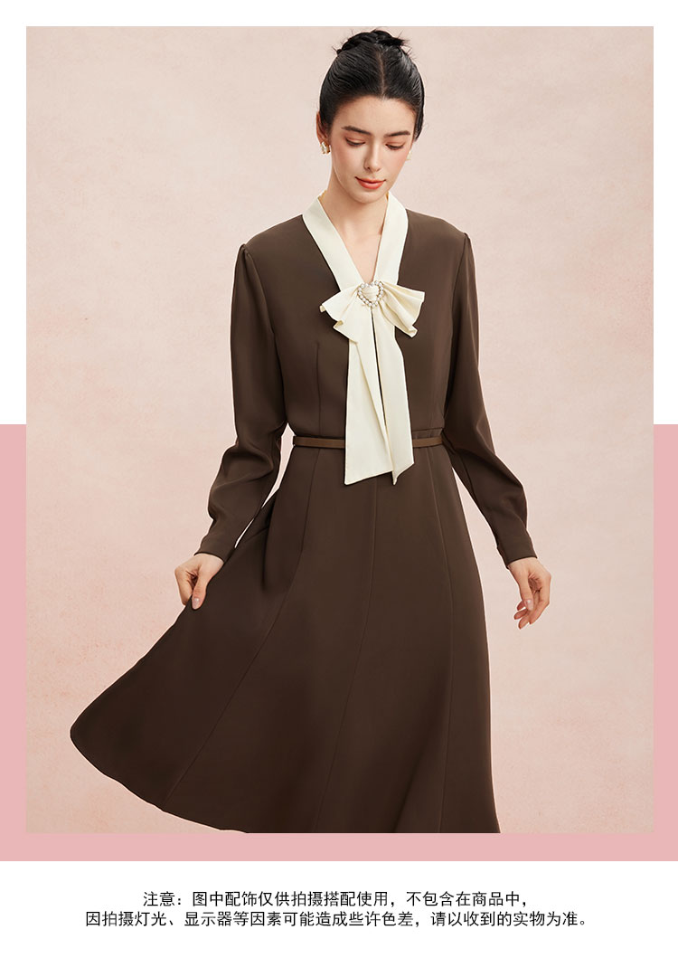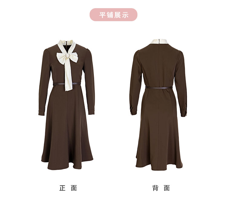 RE8A6斯尔丽瑟俪2023秋季新款蝴蝶结拼接长袖法式连衣裙