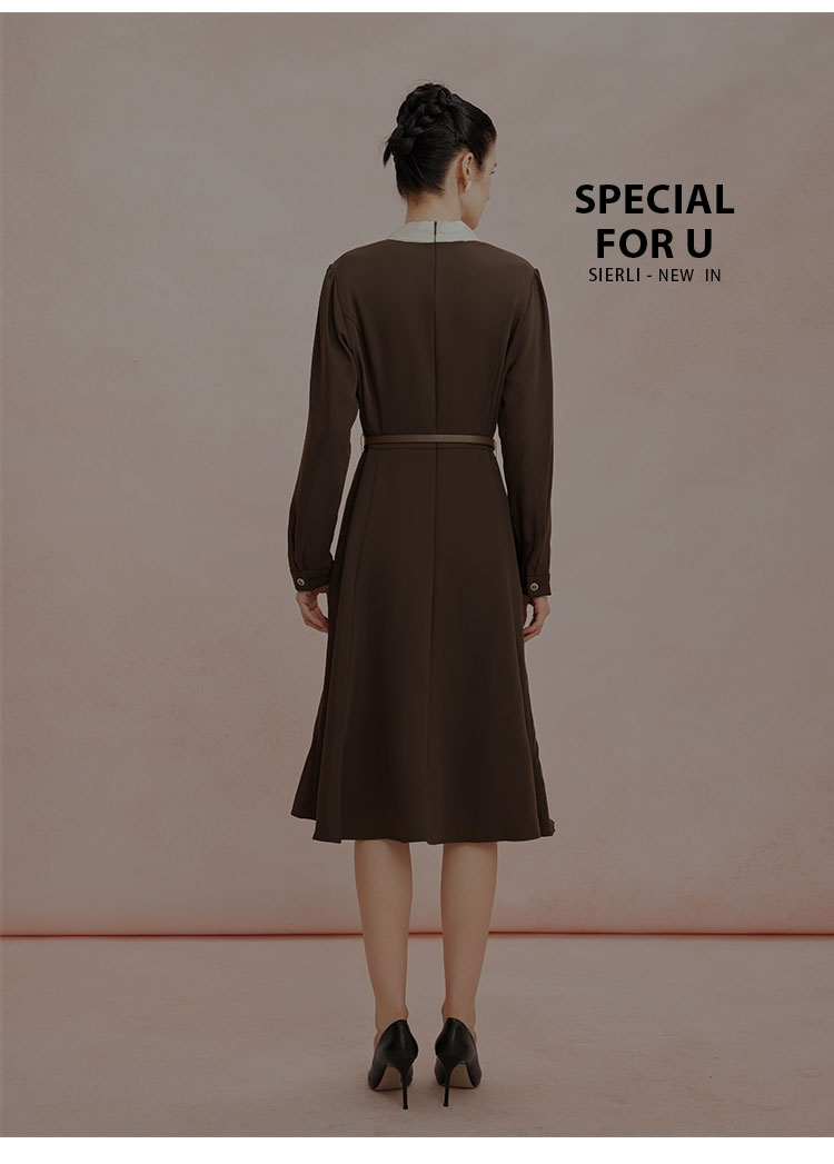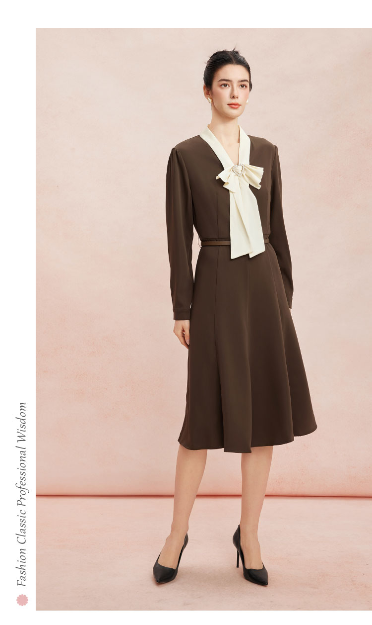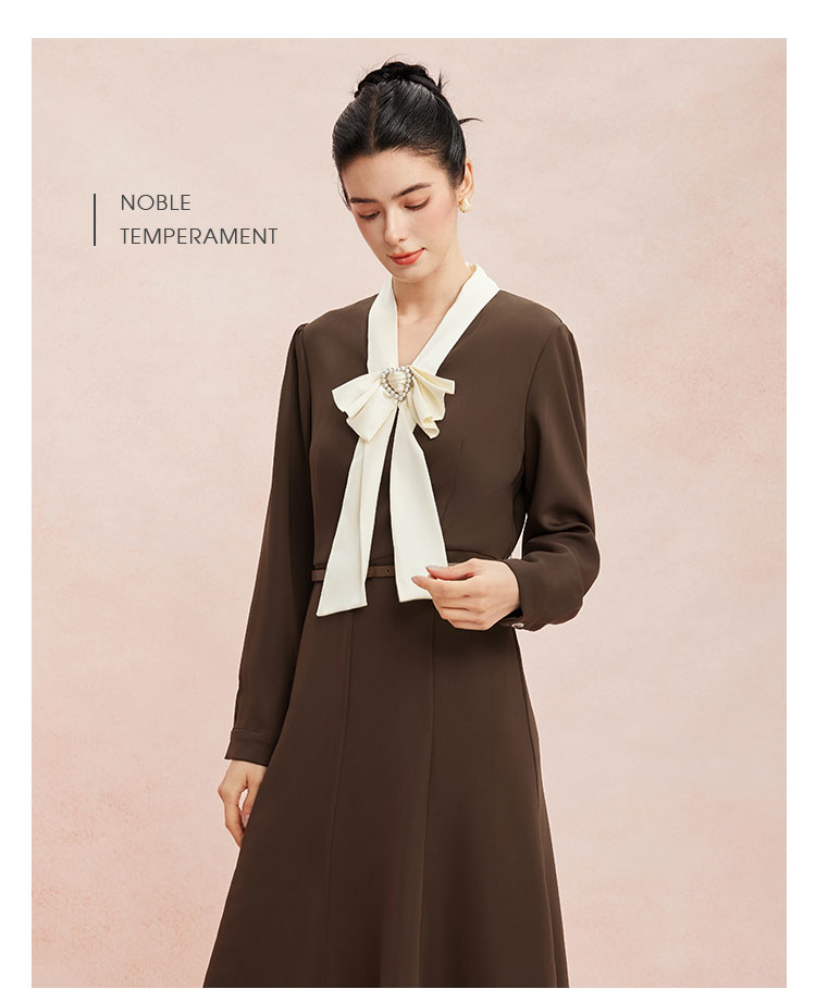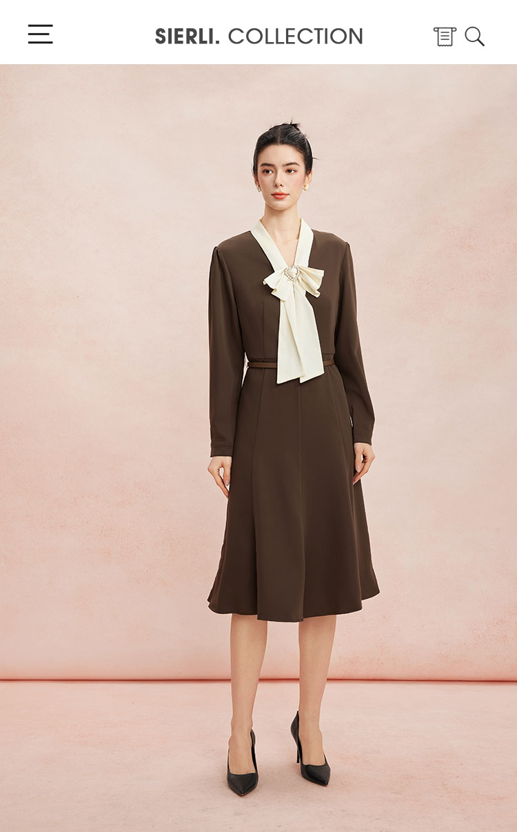 RE8A6斯尔丽瑟俪2023秋季新款蝴蝶结拼接长袖法式连衣裙