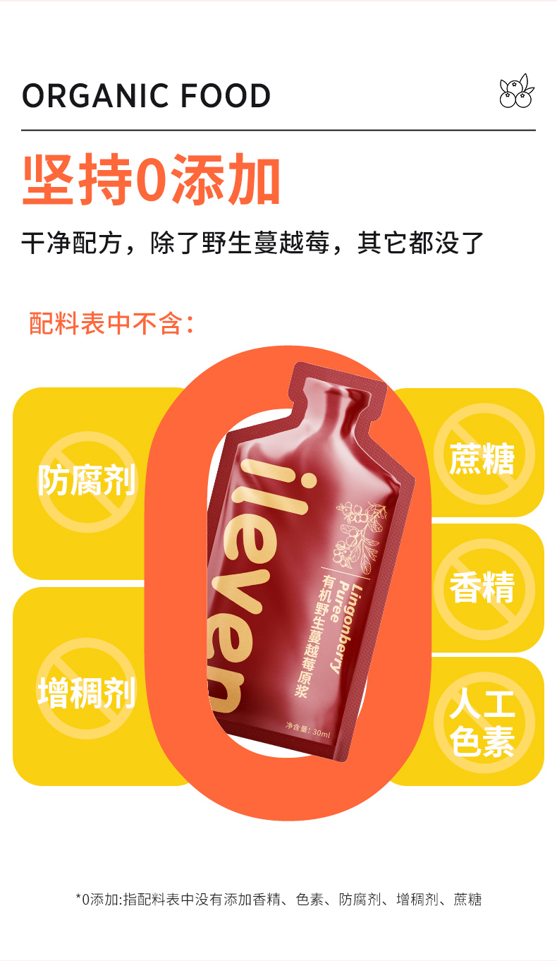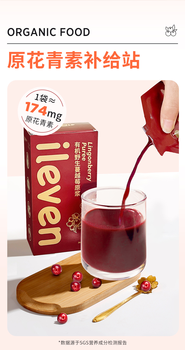 【轻养生活】【有机野生蔓越莓原浆】源自北纬25°大兴安岭黄金产区 有机品质 安全0添加 细腻好吸收 不加糖不加水 纯纯原浆 姨妈推迟 痛经 妇科上火 女性之友 30毫升/7袋/盒