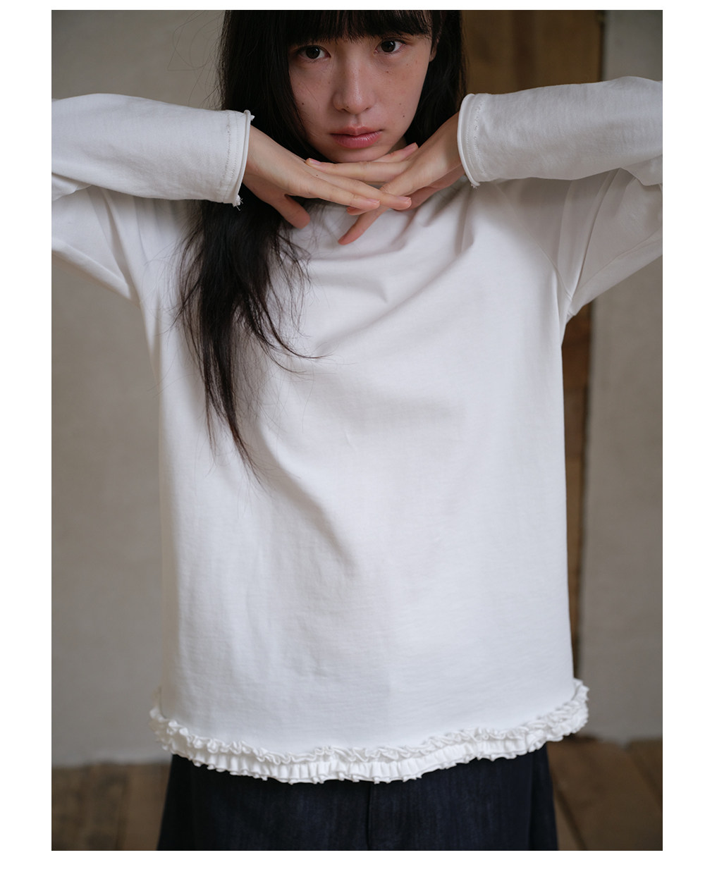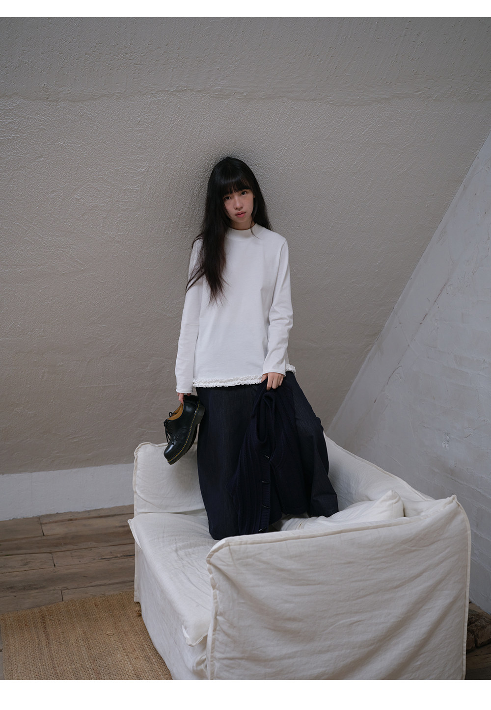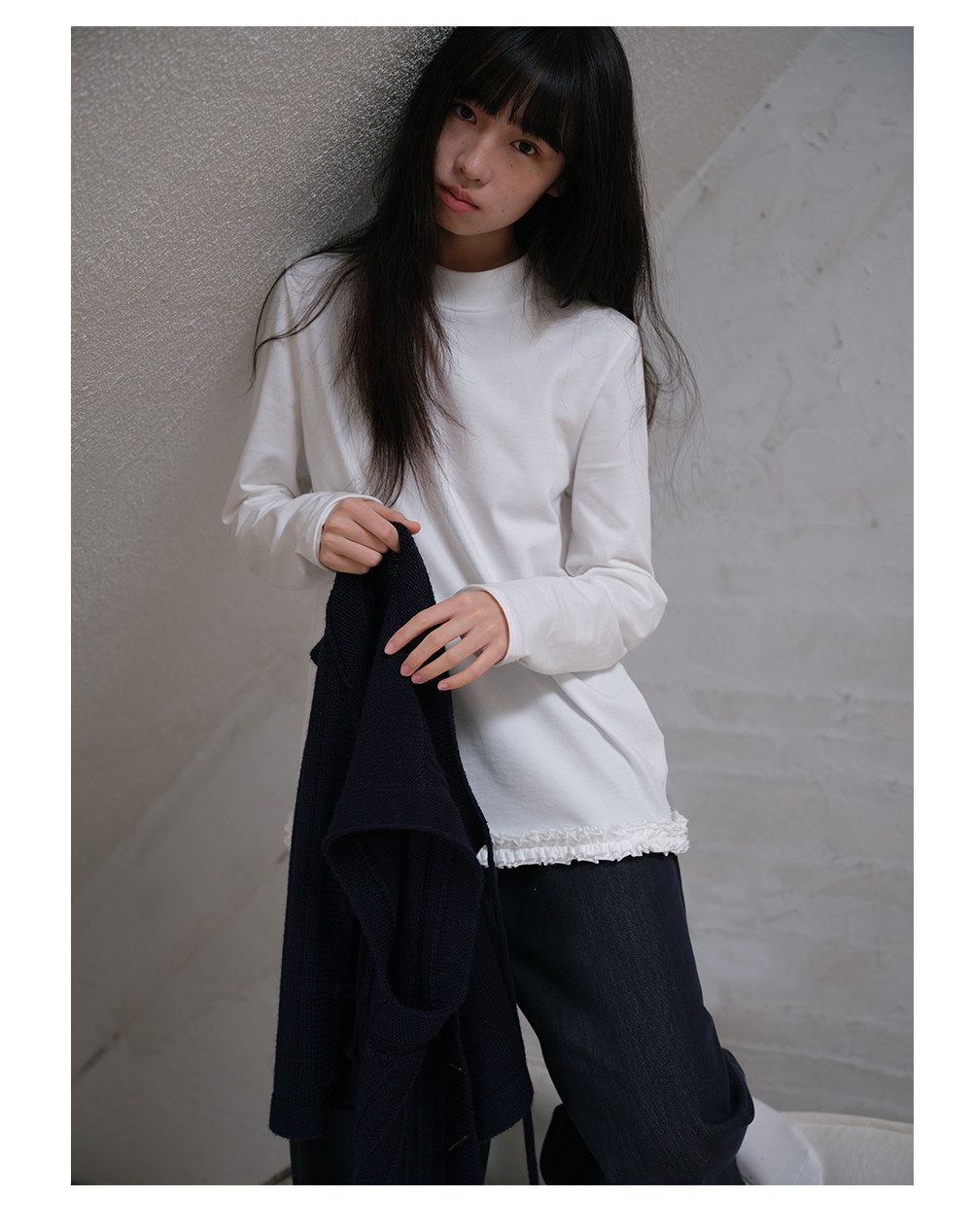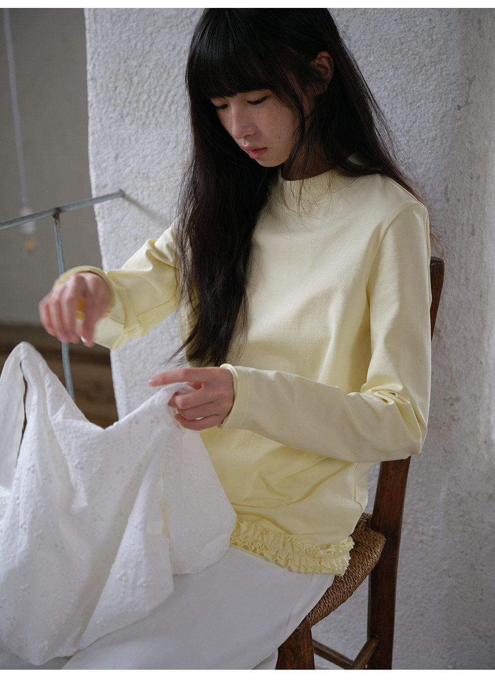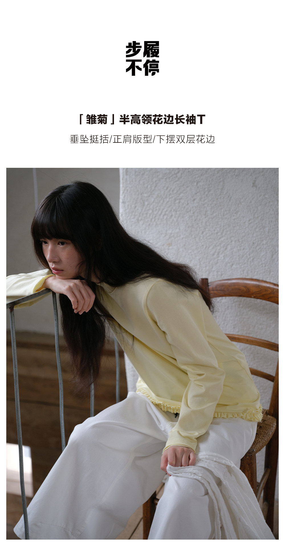 步履不停/6A16106C/半高领花边长袖T