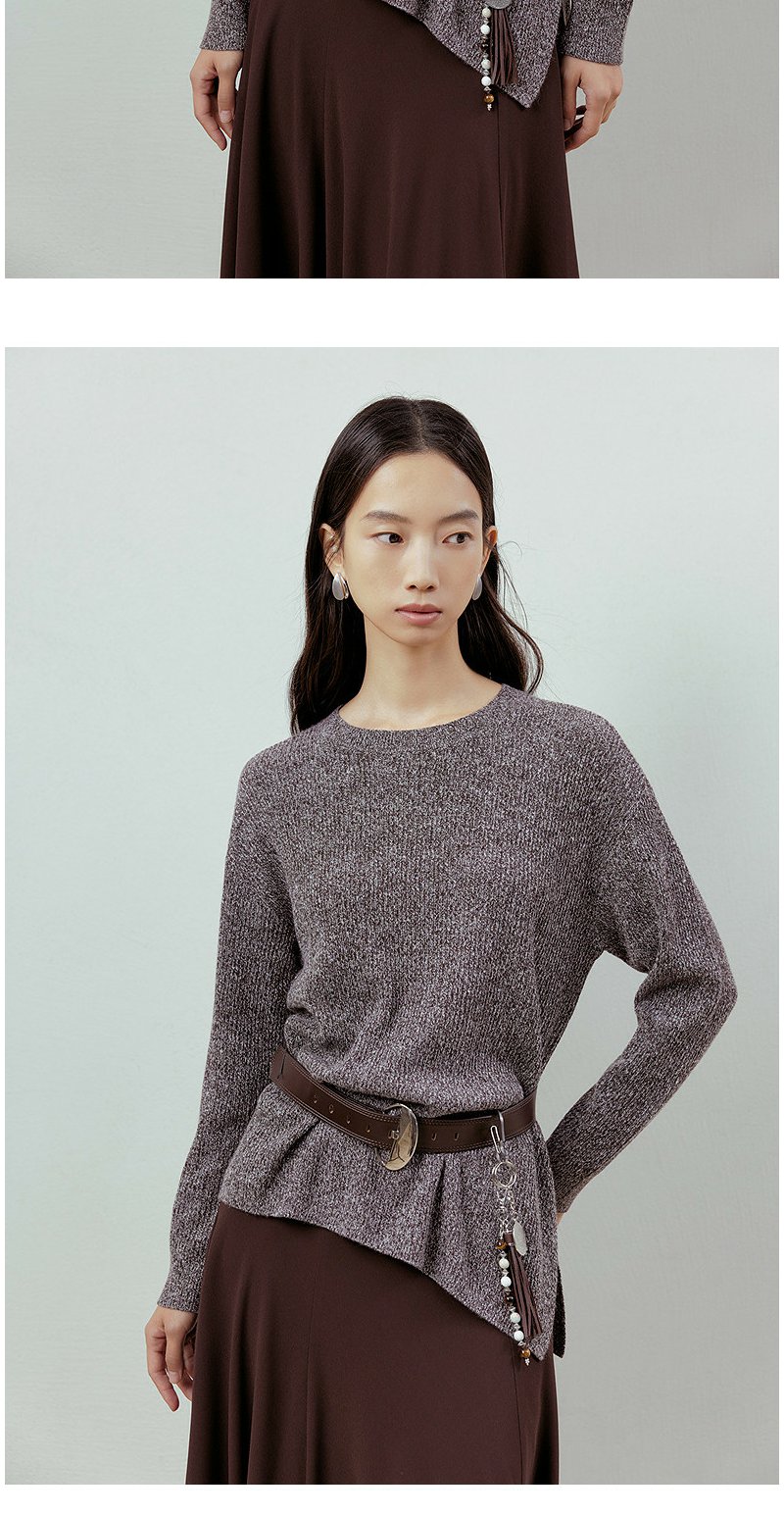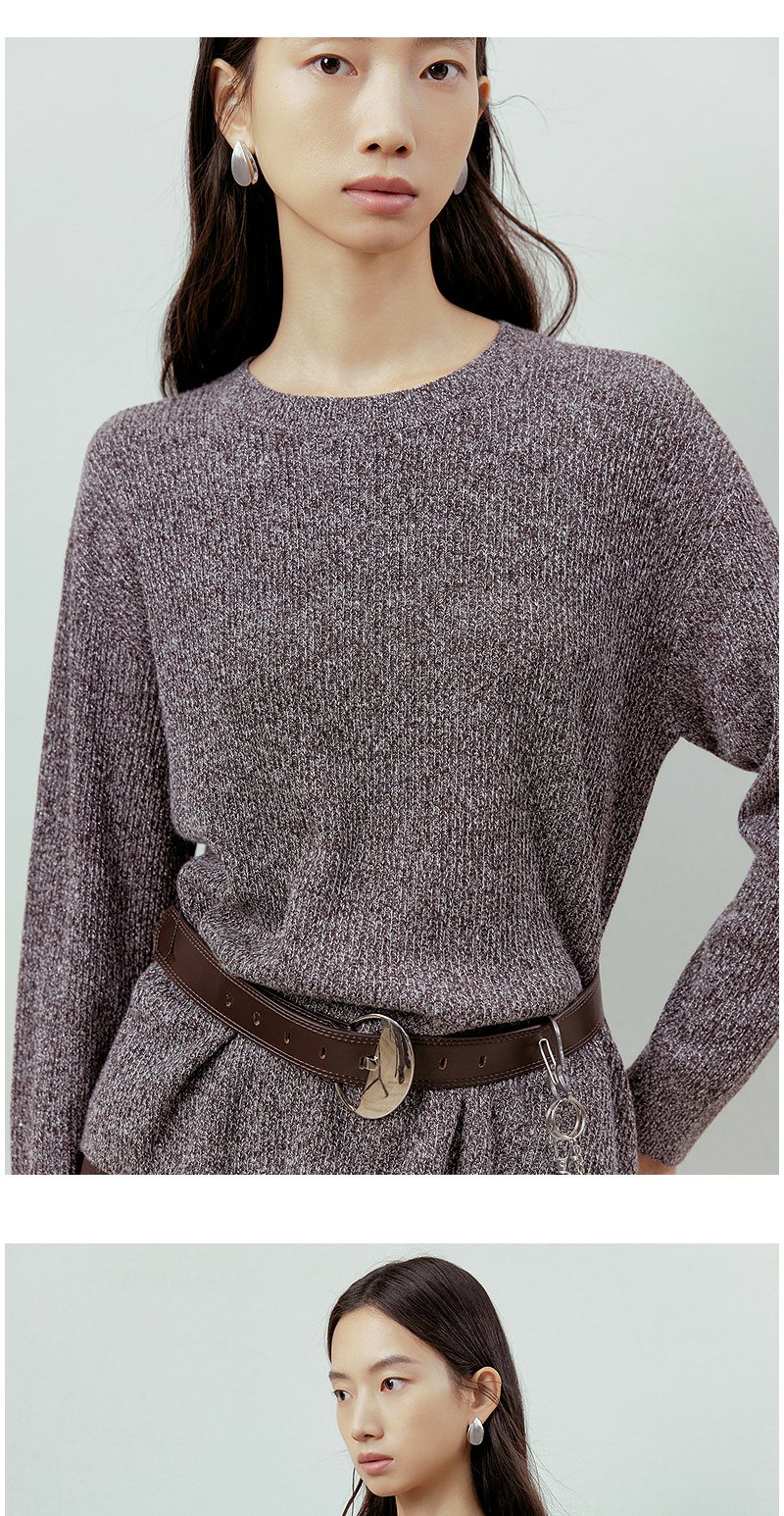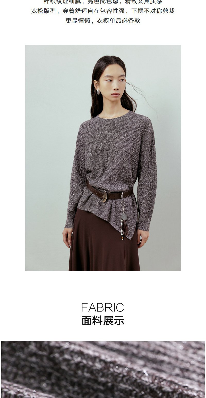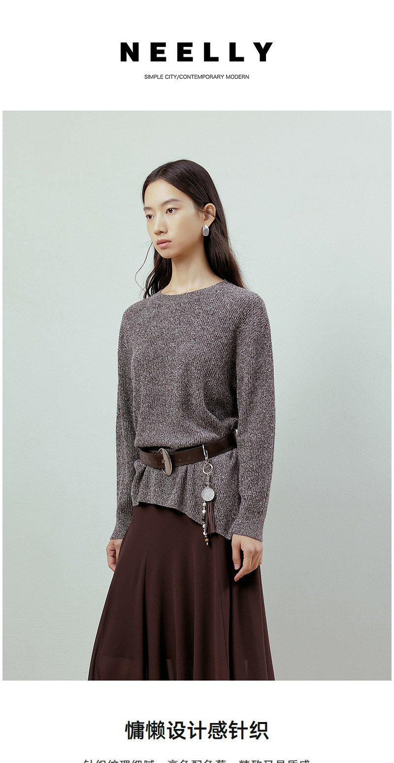 NEELLY纳俪商场同款春季新款慵懒设计感收腰针织衫女休闲纹理上衣N26012A01027