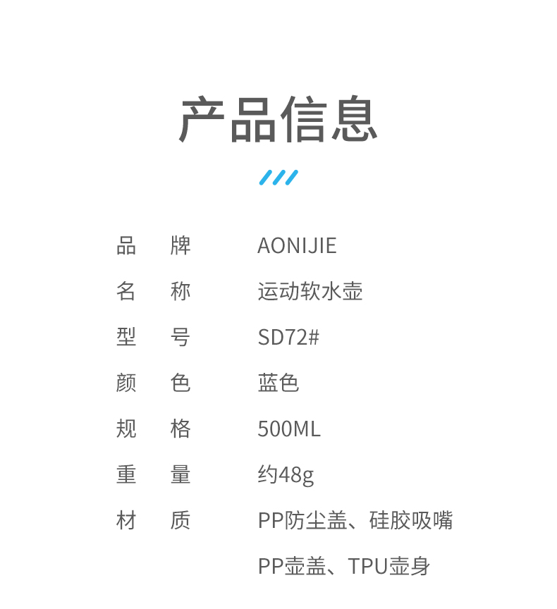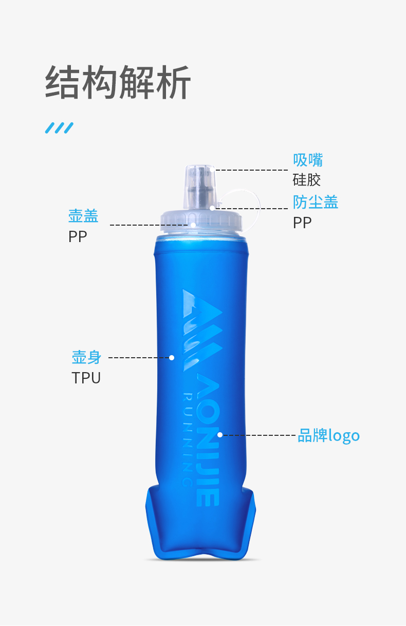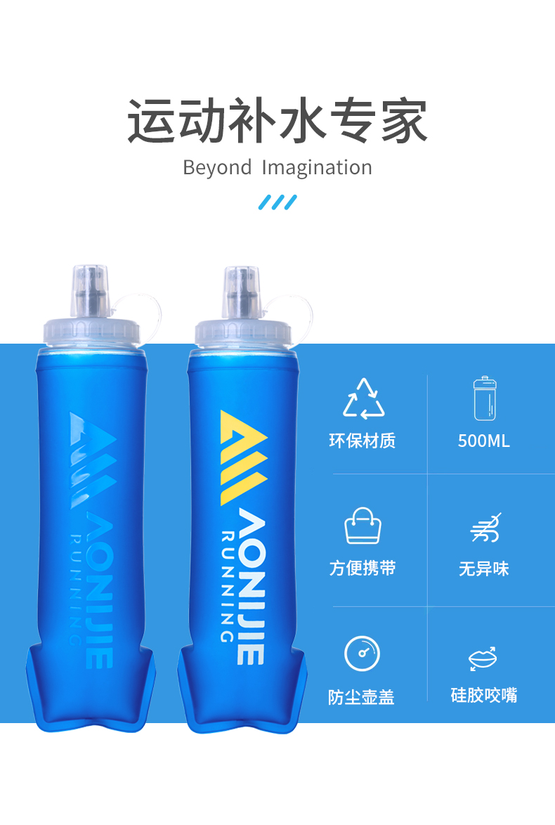 奥尼捷运动软水壶500ml户外跑步便携水袋马拉松越野跑专用可折叠