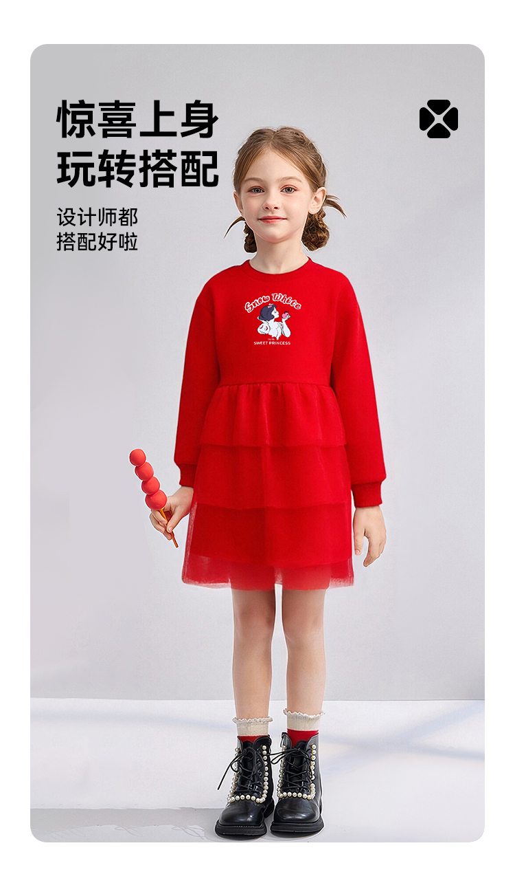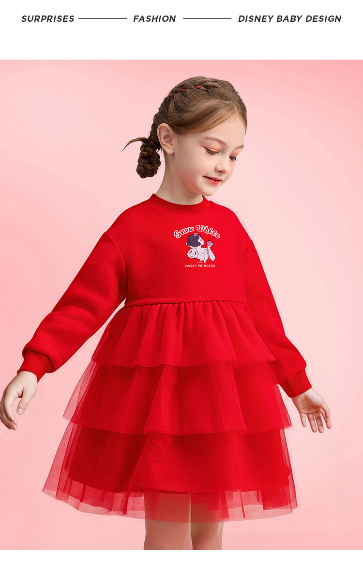 【加绒】【130-165】迪士尼女童冬款加绒公主连衣裙