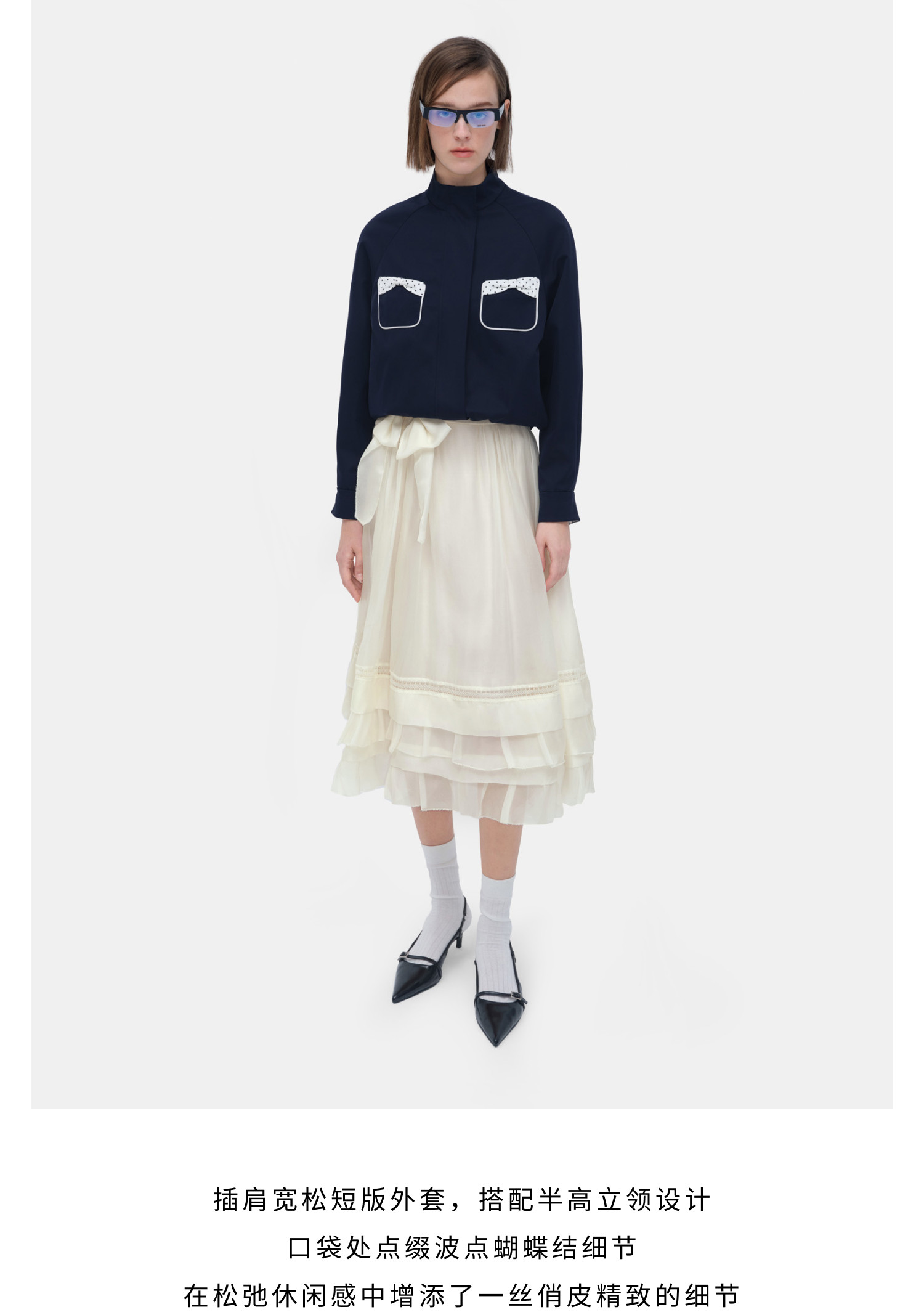 HERLIAN 2026年春季新品立体波点蝴蝶结装饰女士半高立领夹克外套