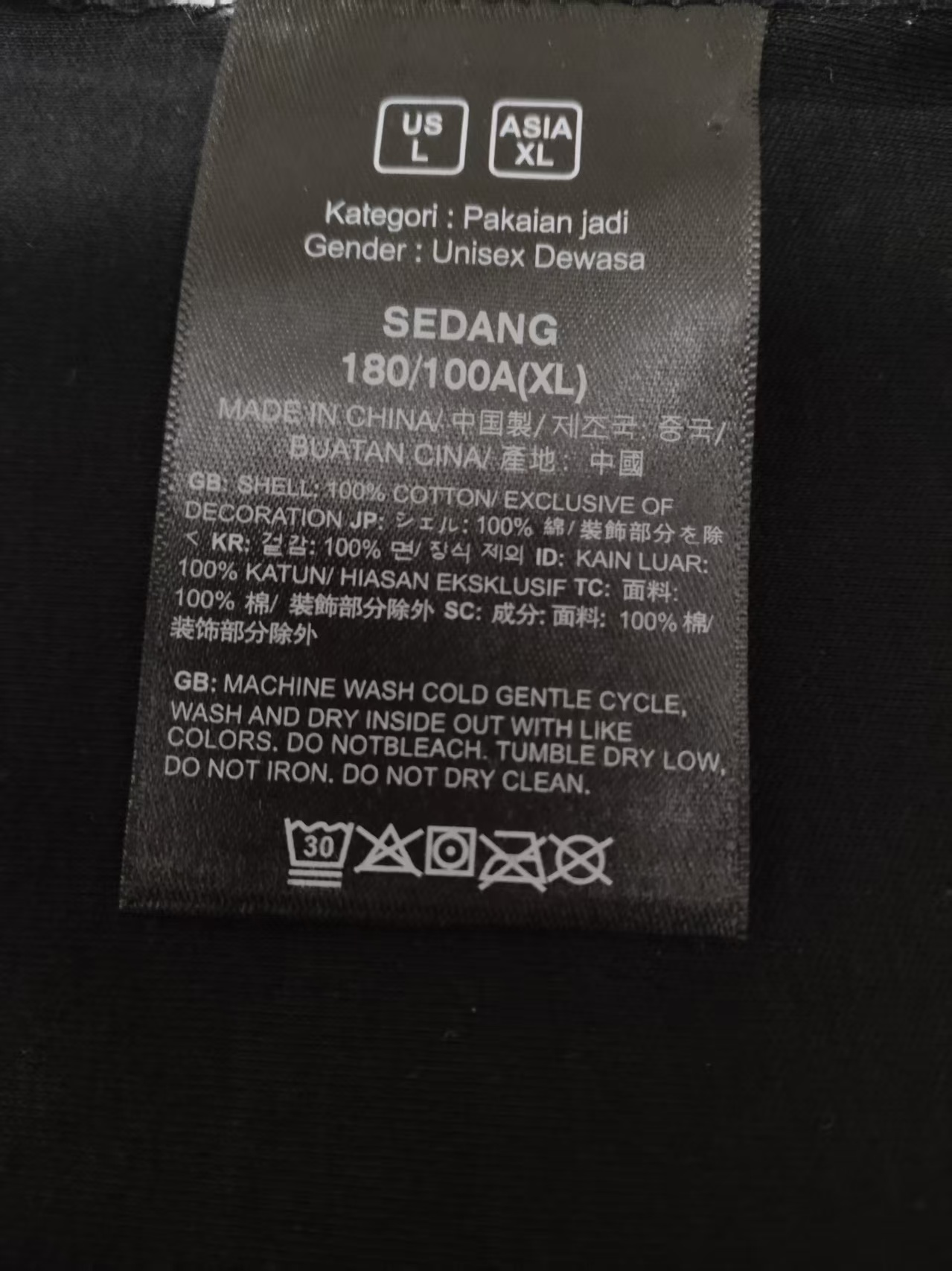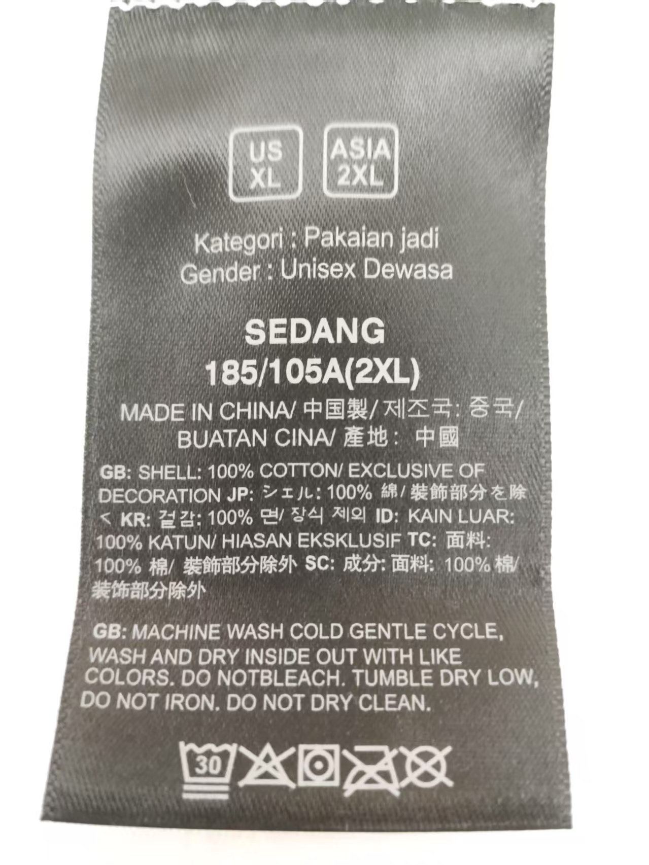 号码:S M L XL XXL