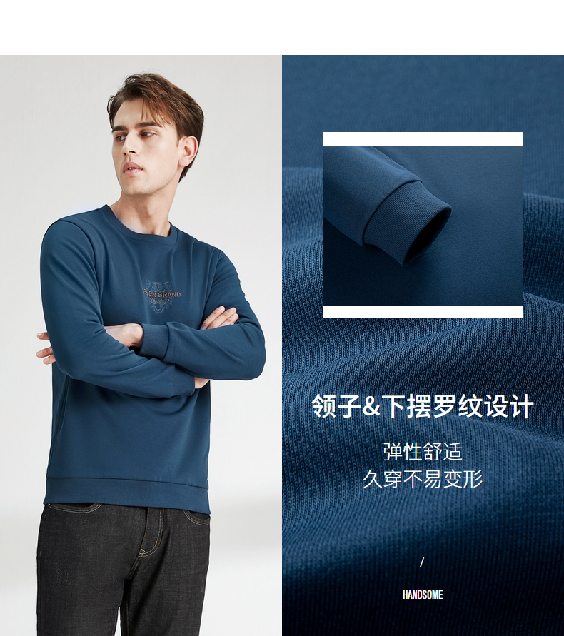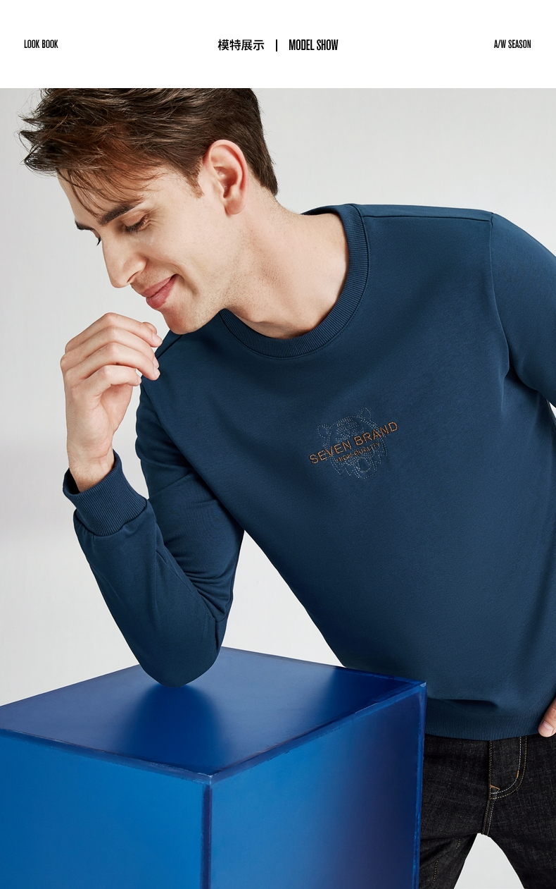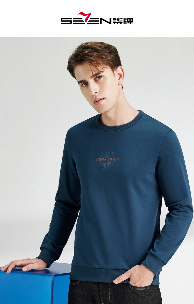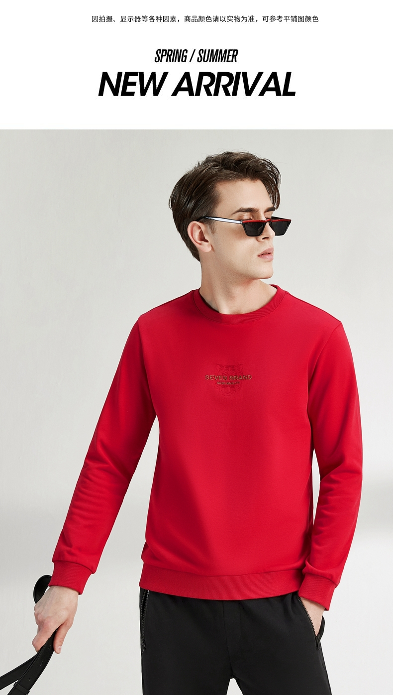 【特价】柒牌卫衣男春秋新款时尚青年潮流圆领老虎刺绣休闲长袖套头衫 122W70210