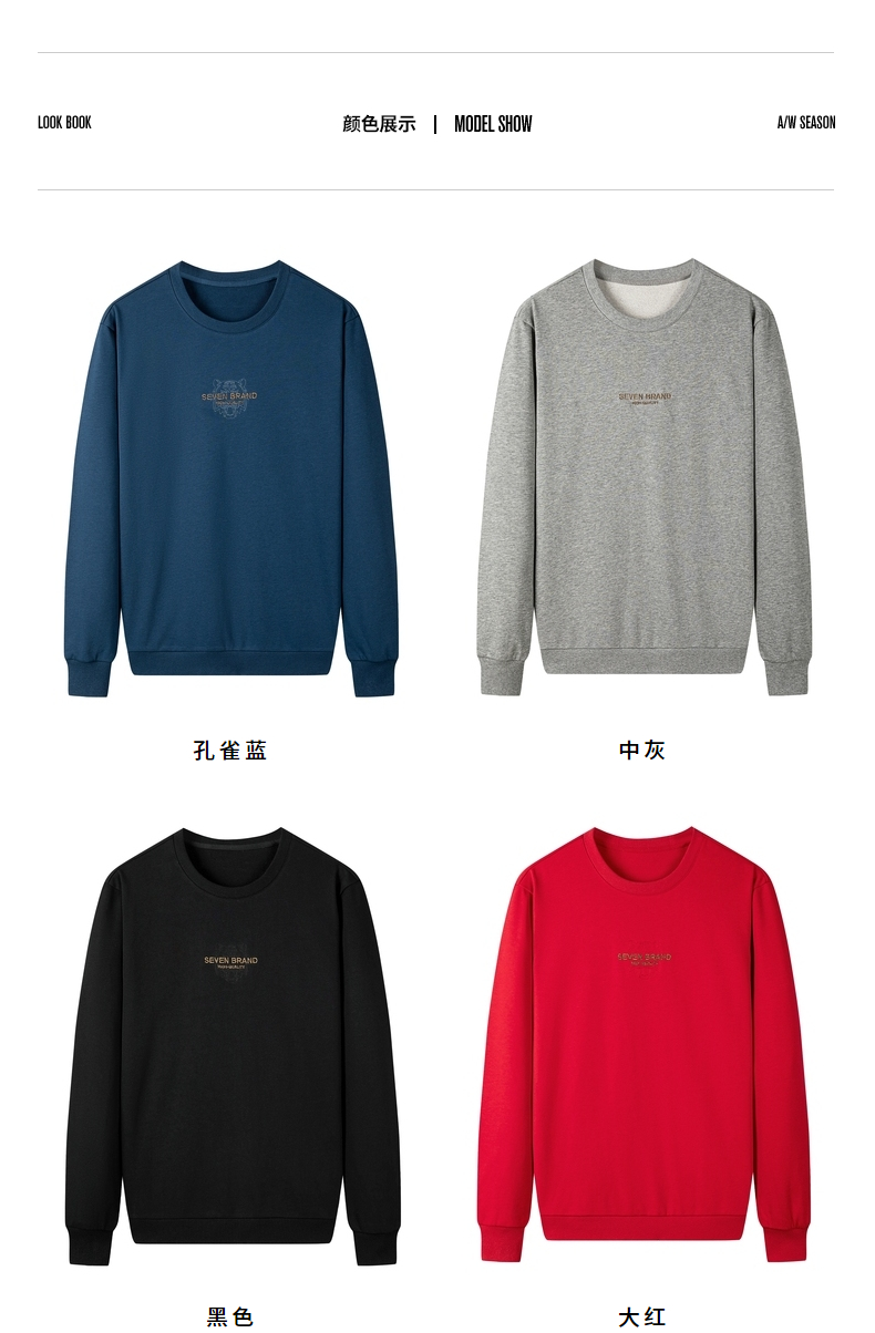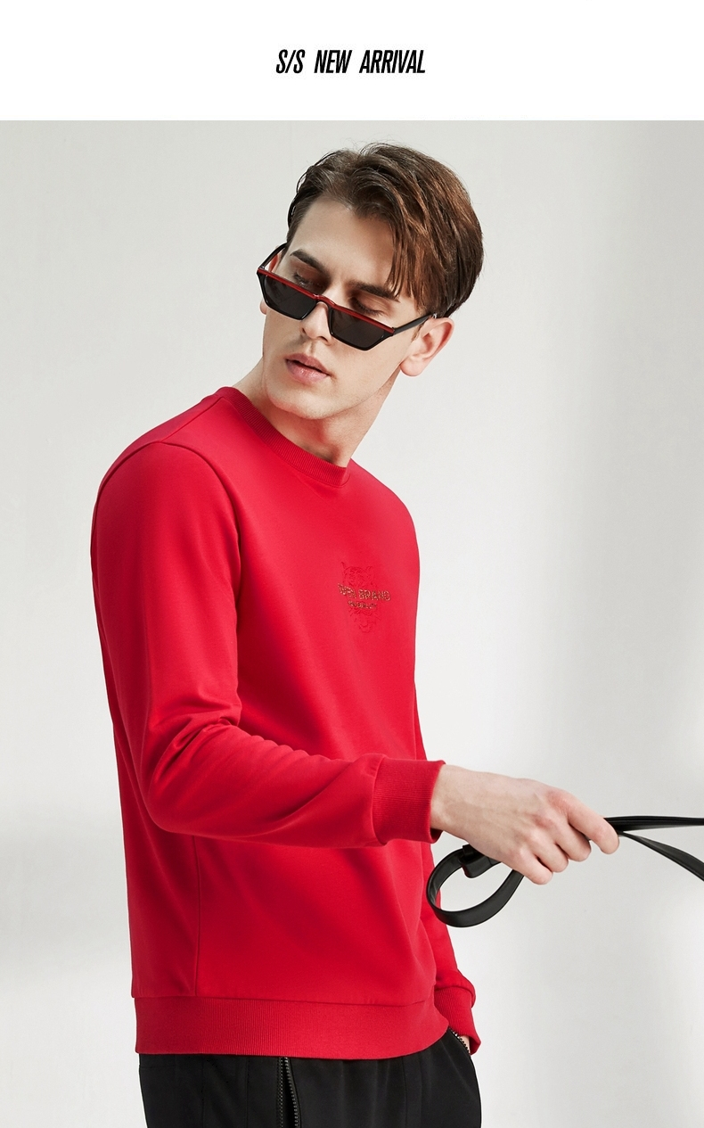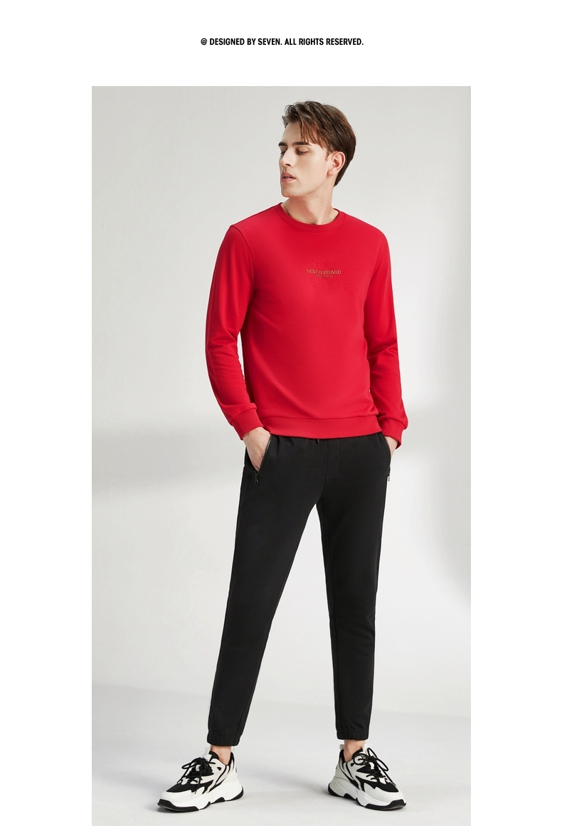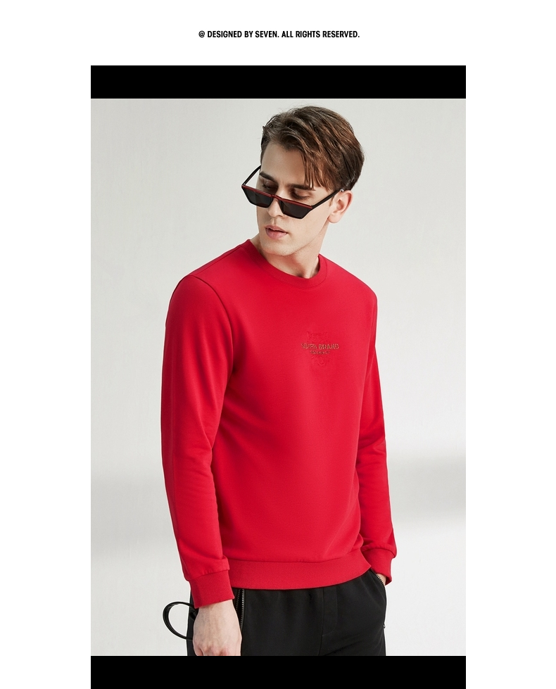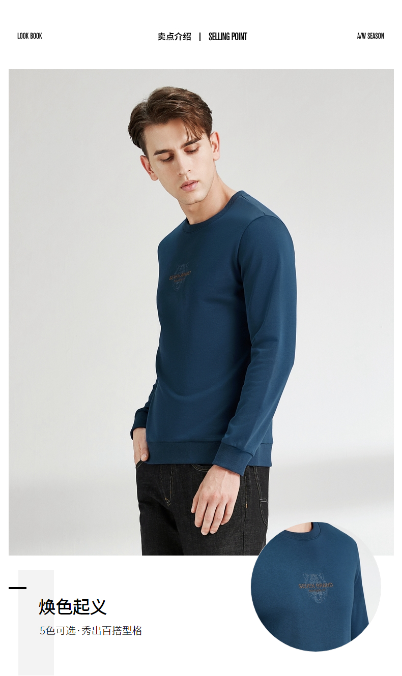 【特价】柒牌卫衣男春秋新款时尚青年潮流圆领老虎刺绣休闲长袖套头衫 122W70210