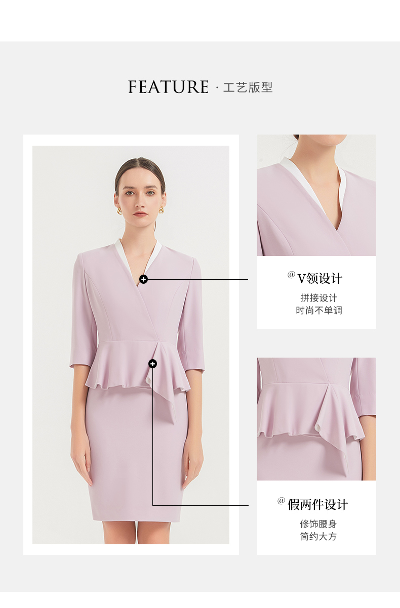 IWY/新款春秋款连衣裙女长袖假两件美容院工作服H型春季Q627