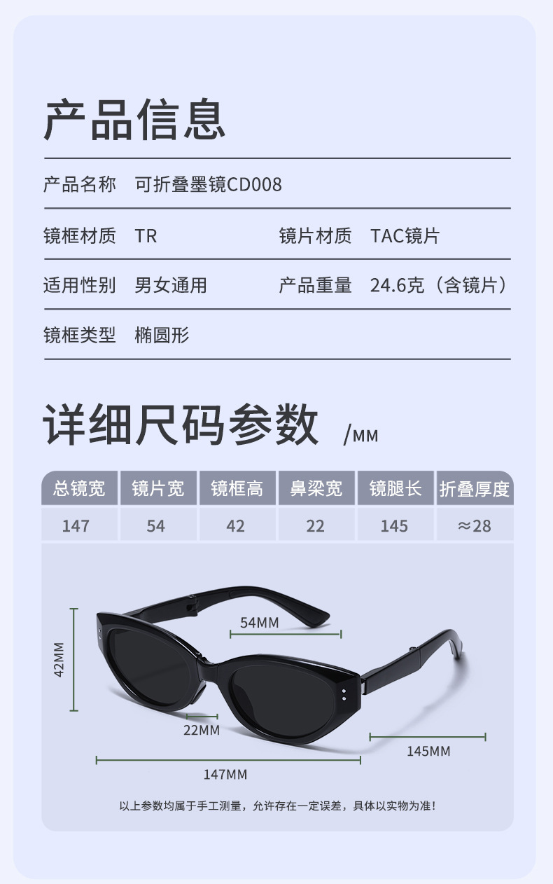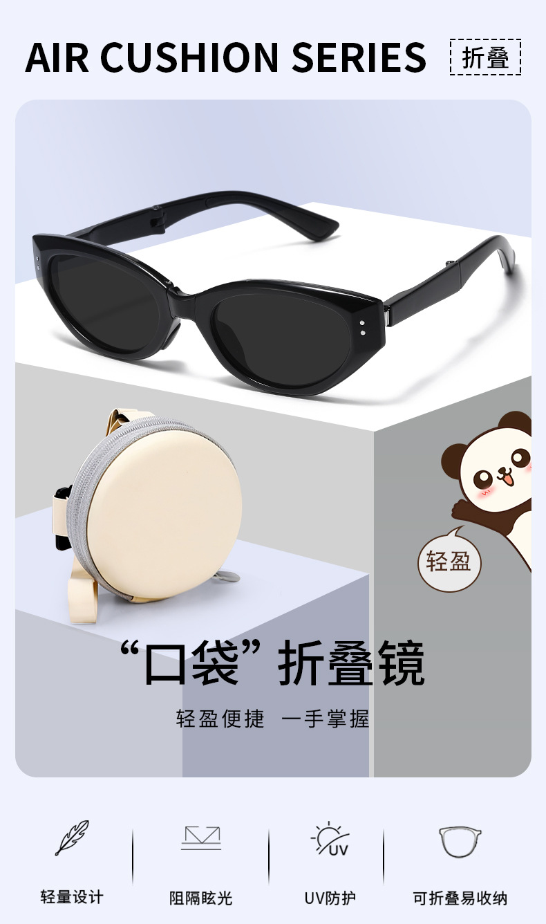 国庆出行【新款折叠太阳镜】防紫外线时尚可折叠墨镜 男女款折叠眼镜显瘦 假期出游