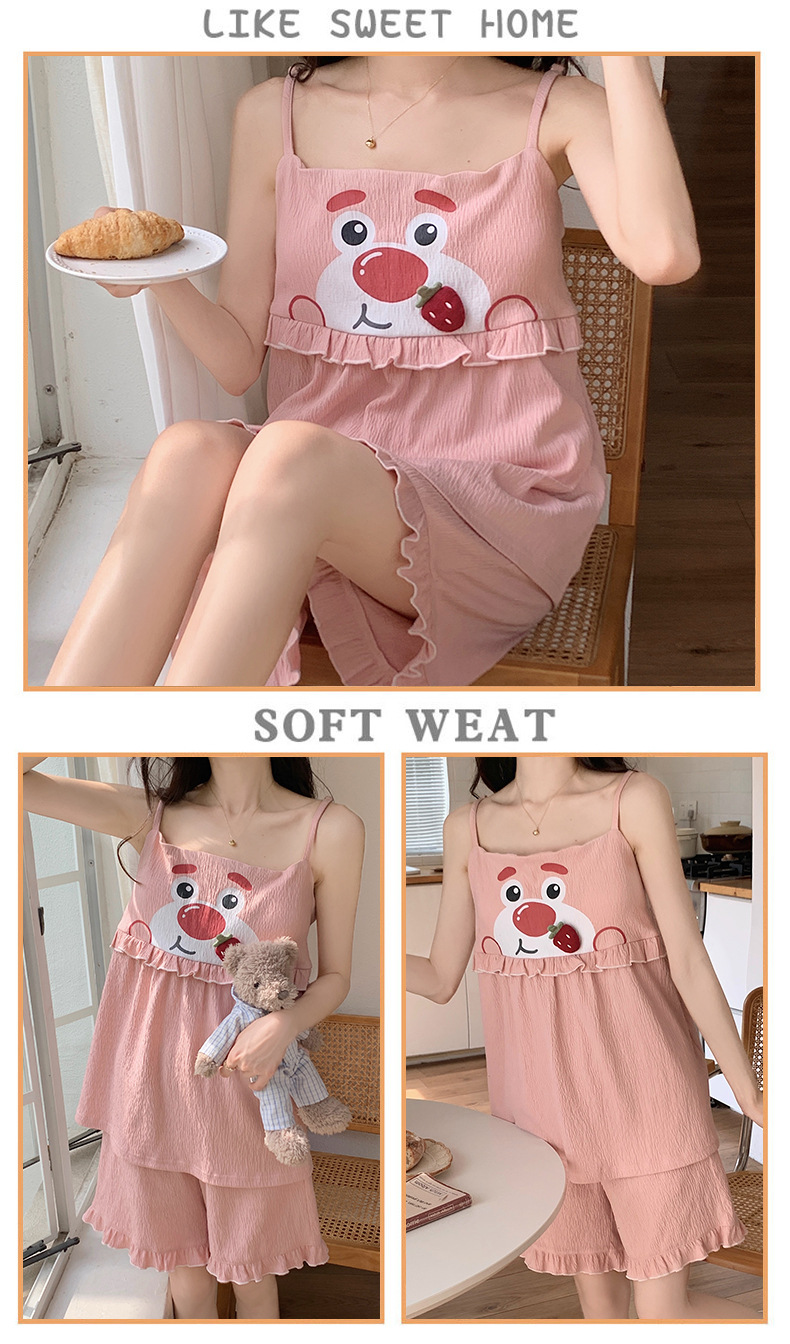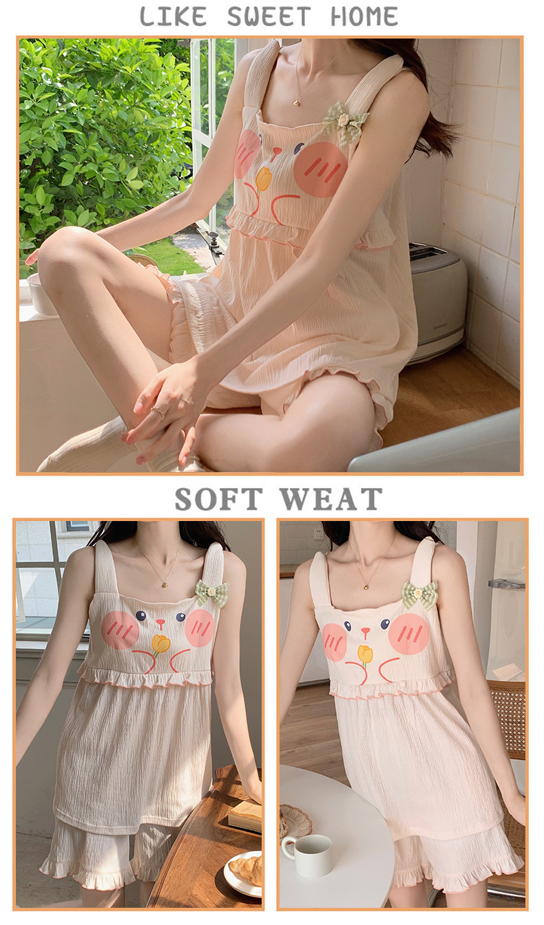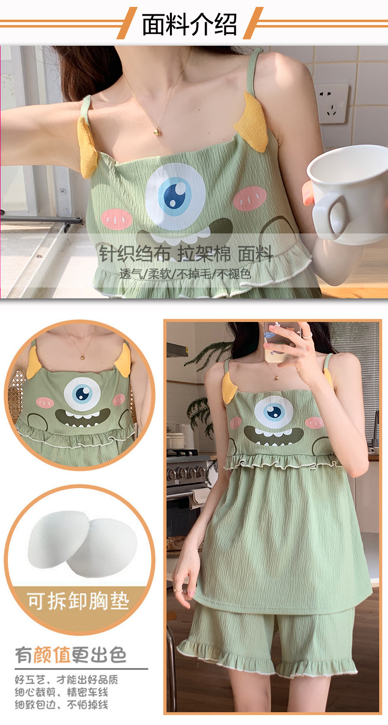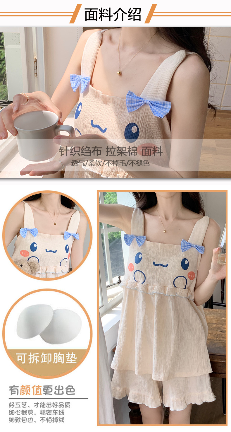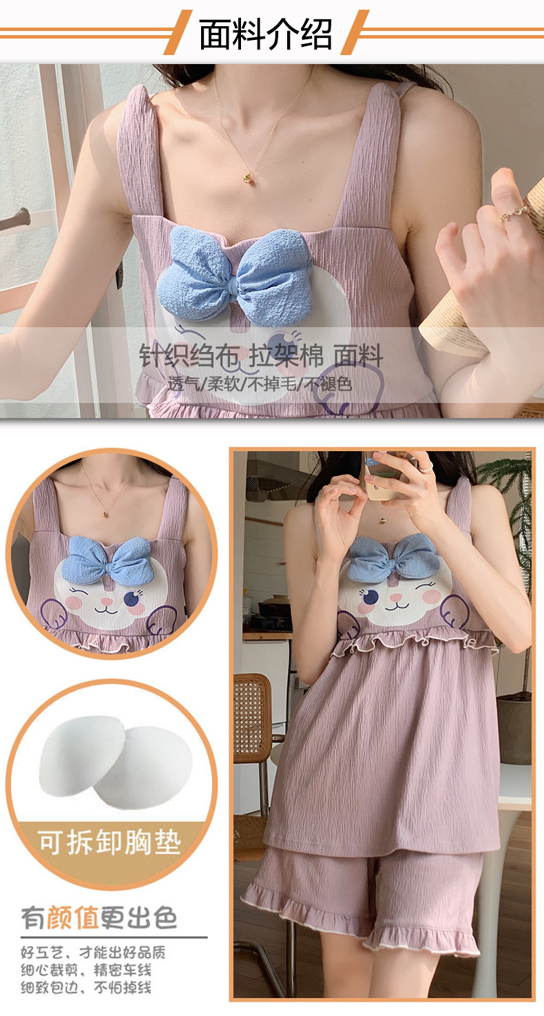 【夏季新款!萌萌卡通胸垫睡衣女款】舒适棉质,清凉吊带设计,性感无袖背心,家居休闲两件套,让你美美哒从头到脚!