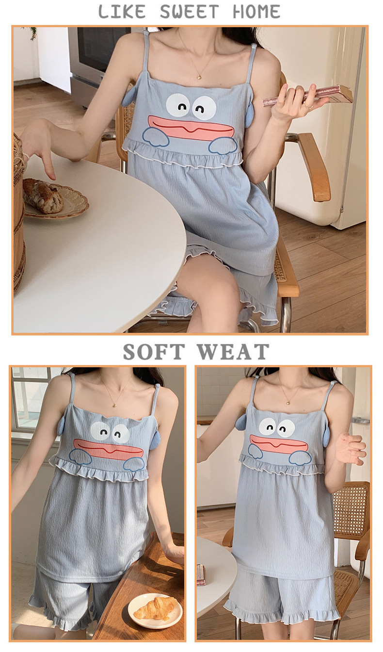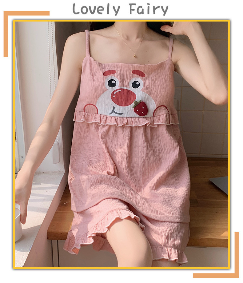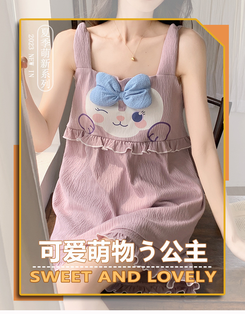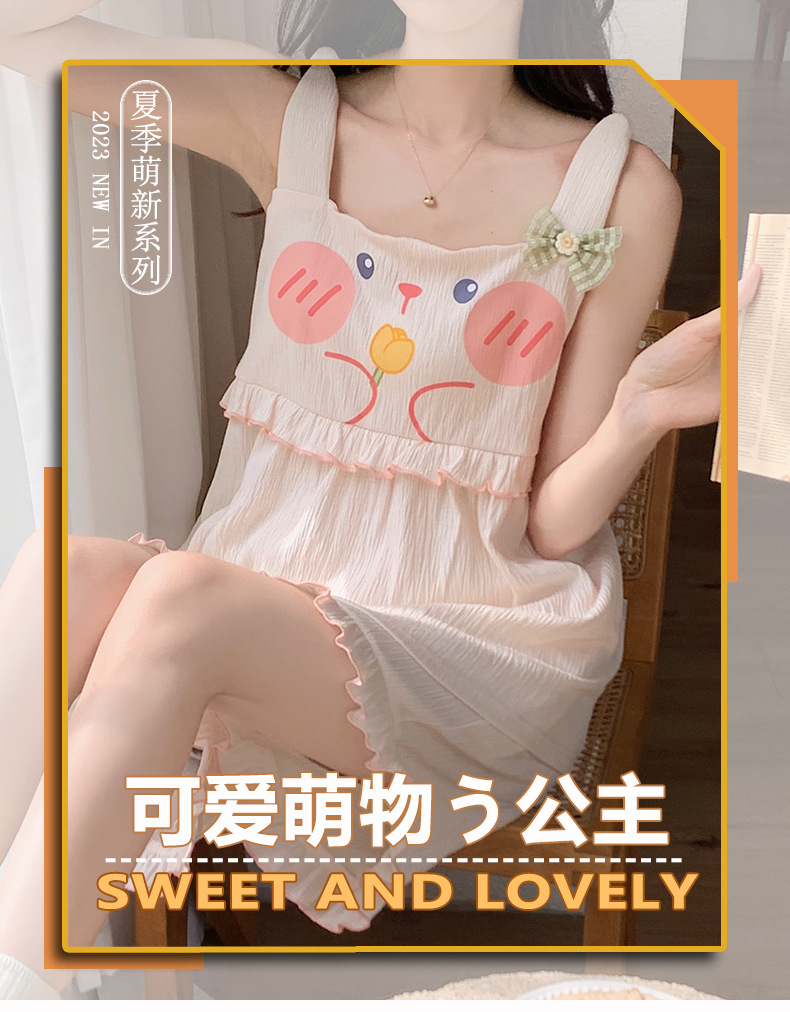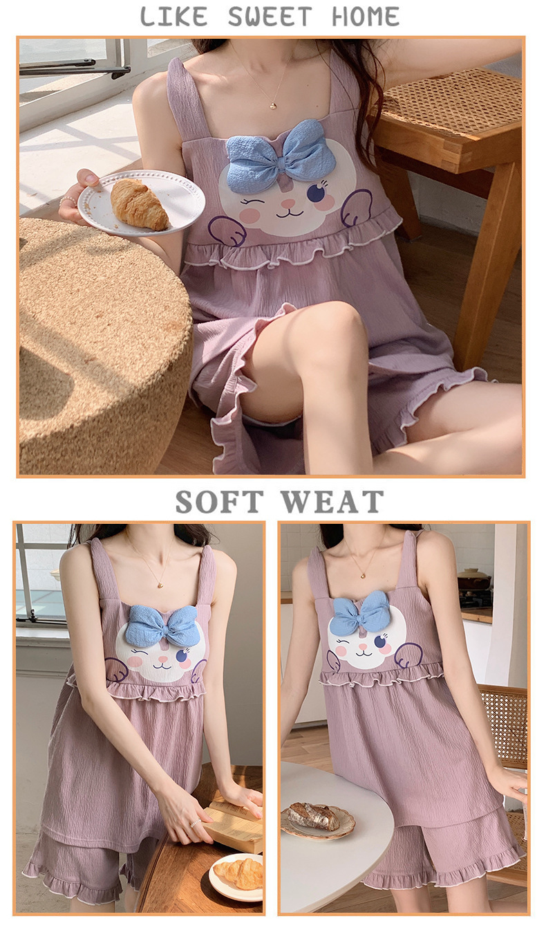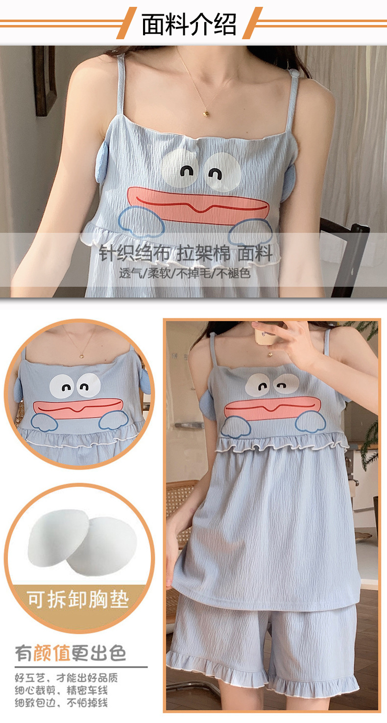 【夏季新款!萌萌卡通胸垫睡衣女款】舒适棉质,清凉吊带设计,性感无袖背心,家居休闲两件套,让你美美哒从头到脚!