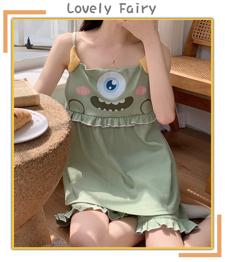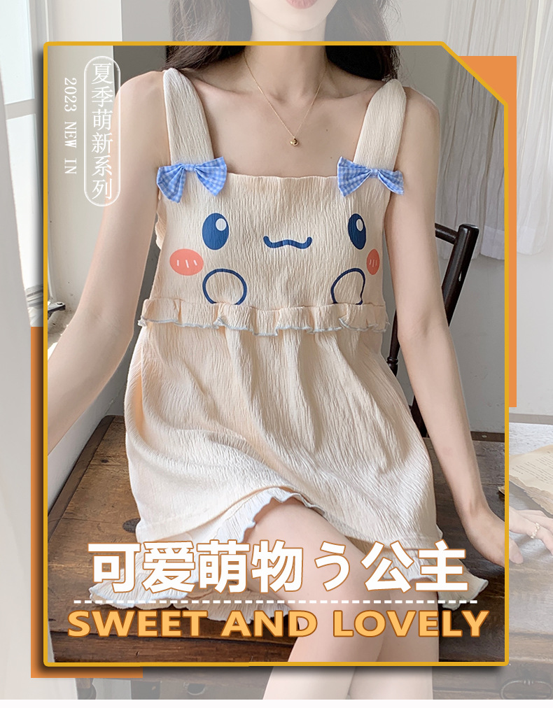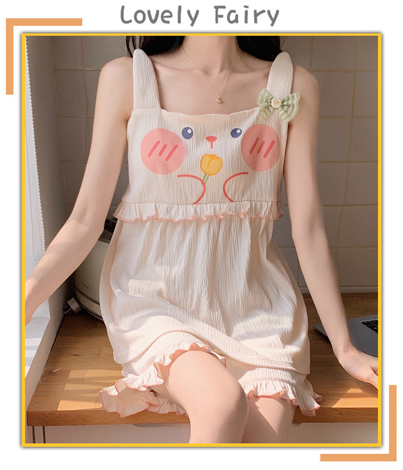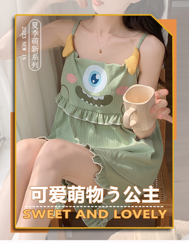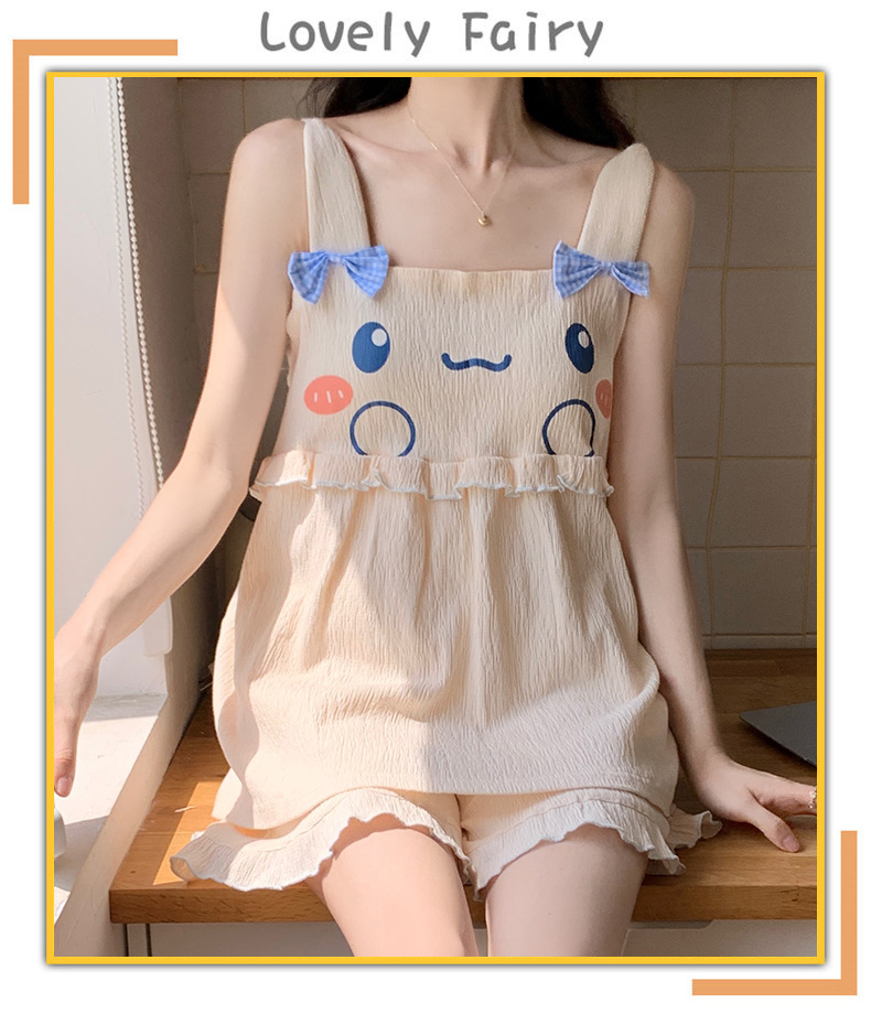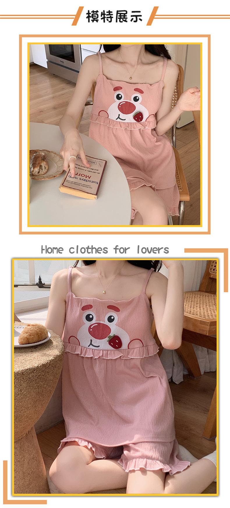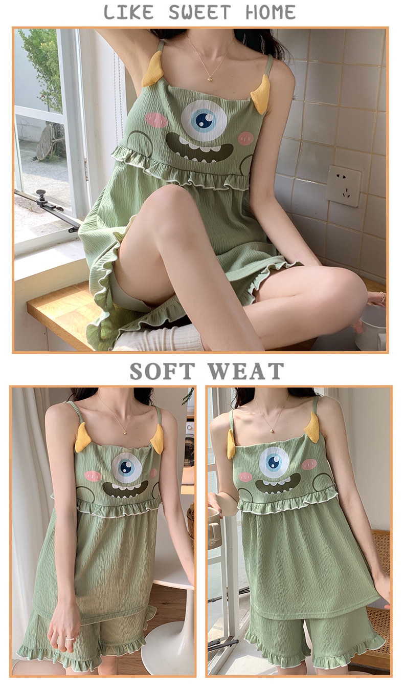 【夏季新款!萌萌卡通胸垫睡衣女款】舒适棉质,清凉吊带设计,性感无袖背心,家居休闲两件套,让你美美哒从头到脚!