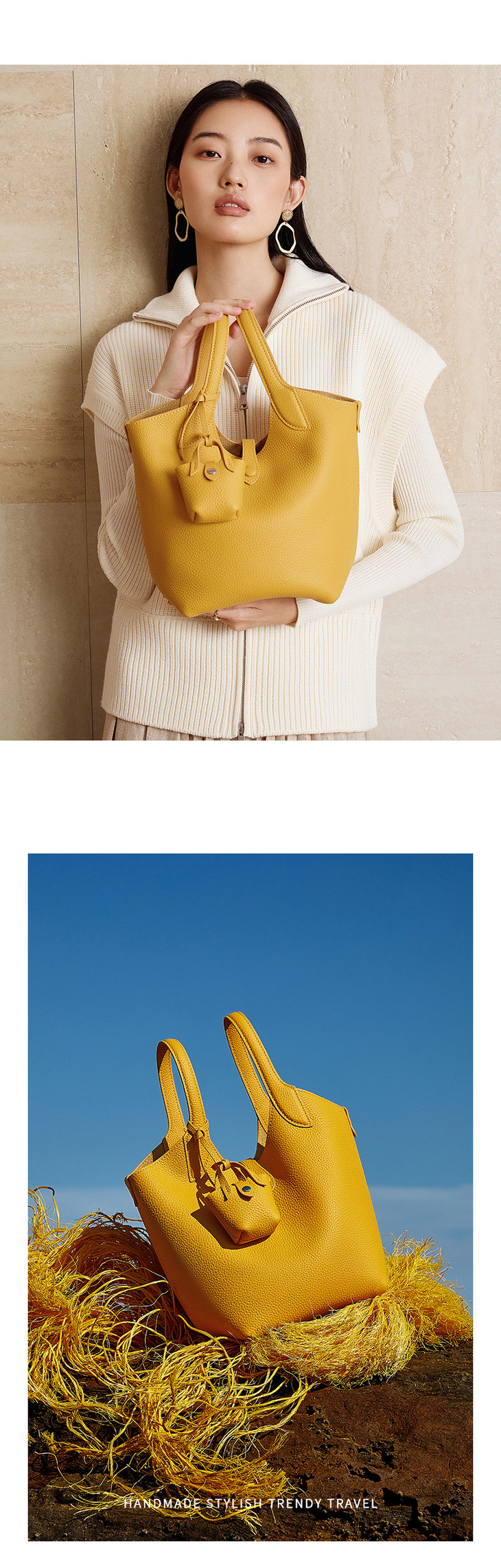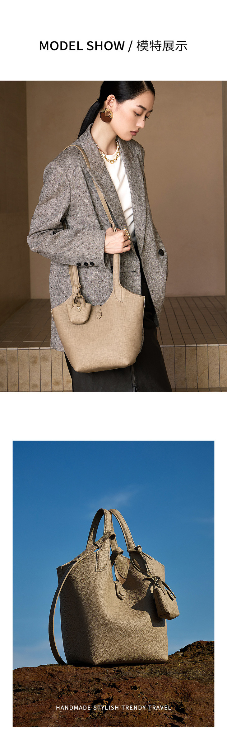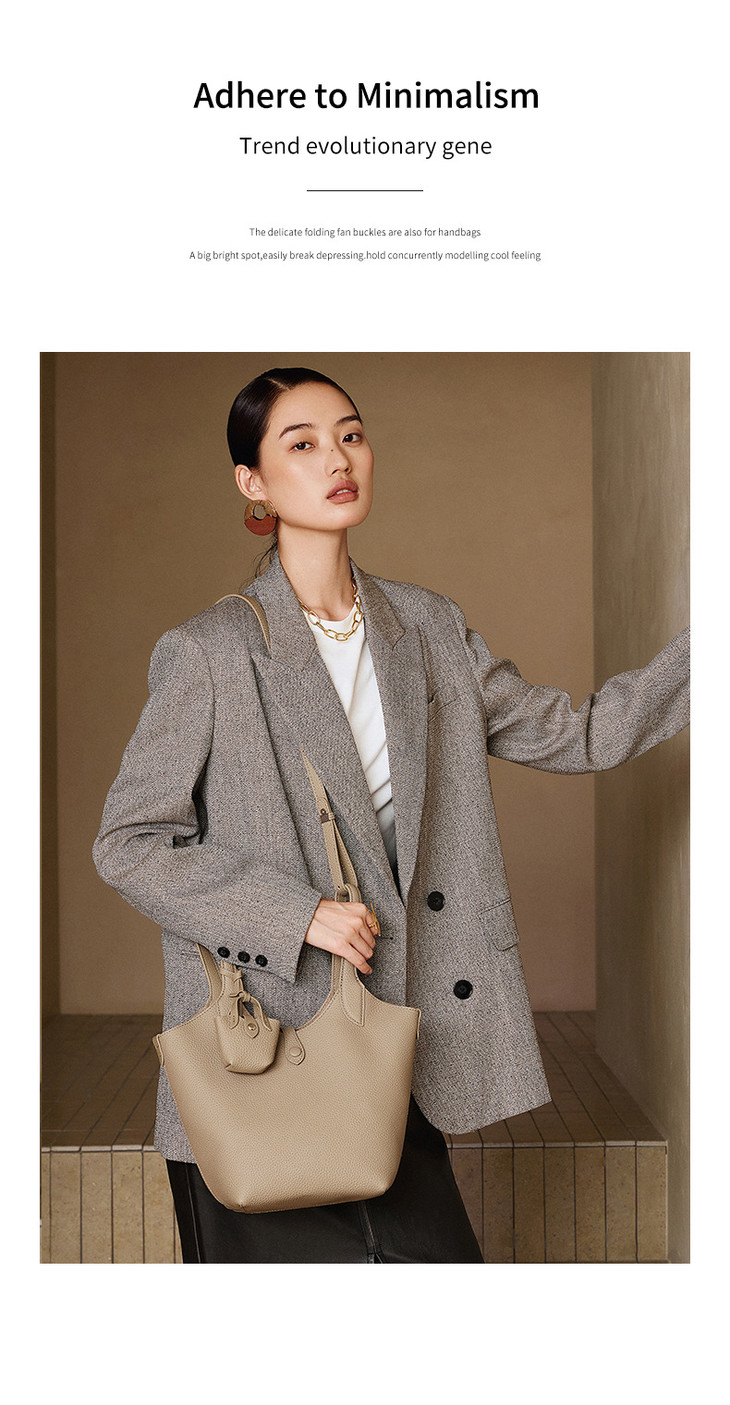 真皮秋冬轻奢小众设计手提斜挎水桶包QSL3182