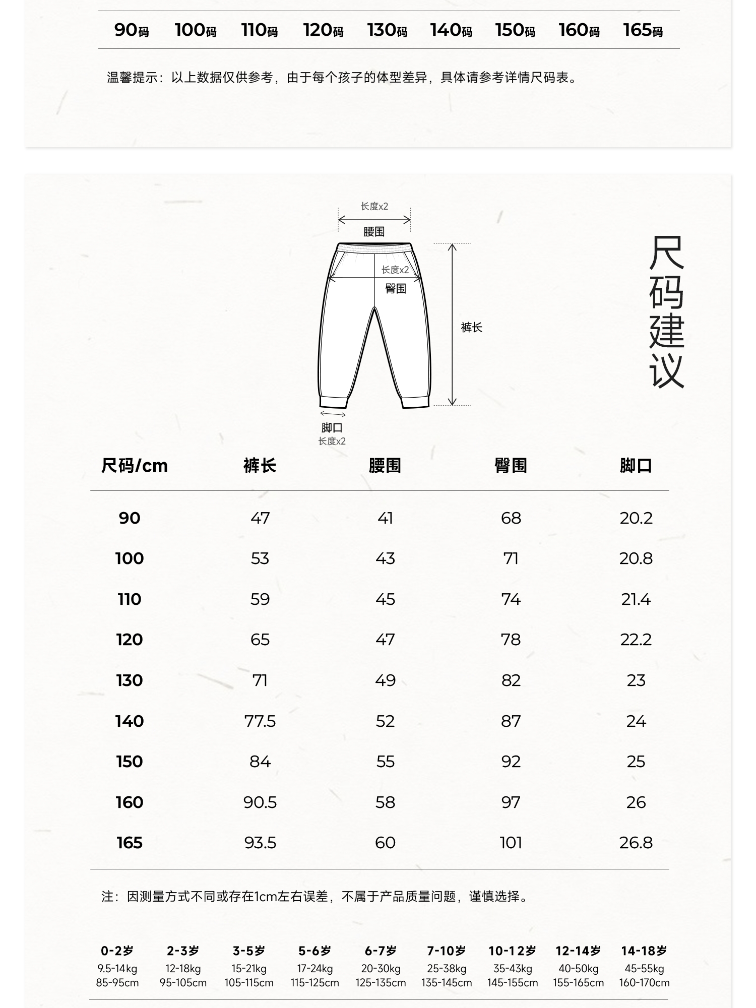 【代发】【米白160、165码预售4.19发货】棵初童装亲子中大女童清新文艺感休闲长裤纯色裤子米白/西柚粉