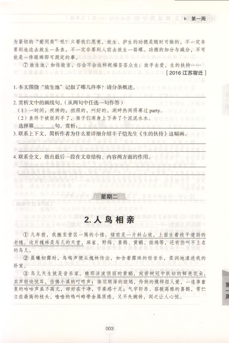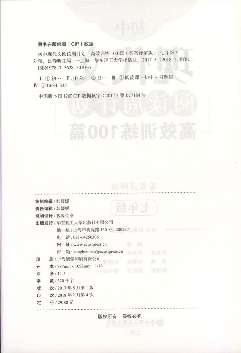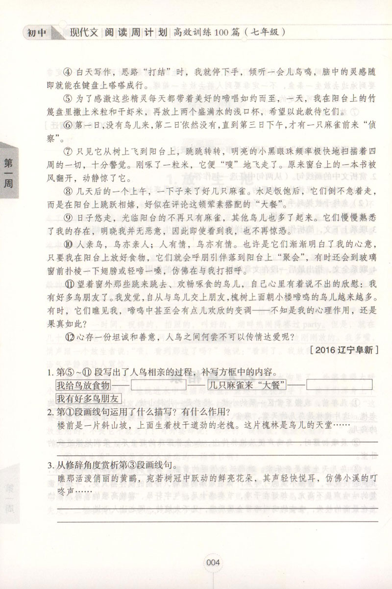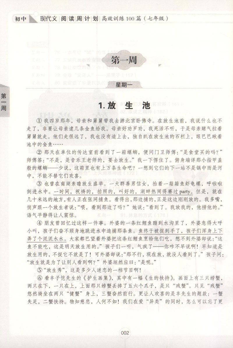 7年级/初中现代文阅读周计划:高效训练100篇 正版畅销图书籍 文轩高效训练100篇(7年级答案详解版)/初中现代文阅读周计划