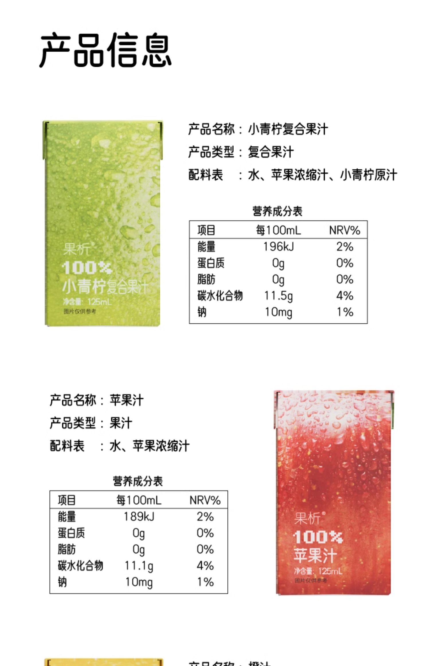 柠檬共和国果析水果汁苹果/小青柠/橙汁 配料干净无负担