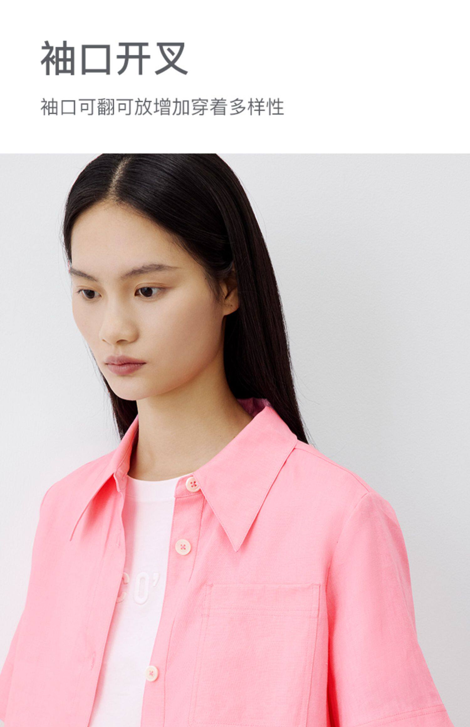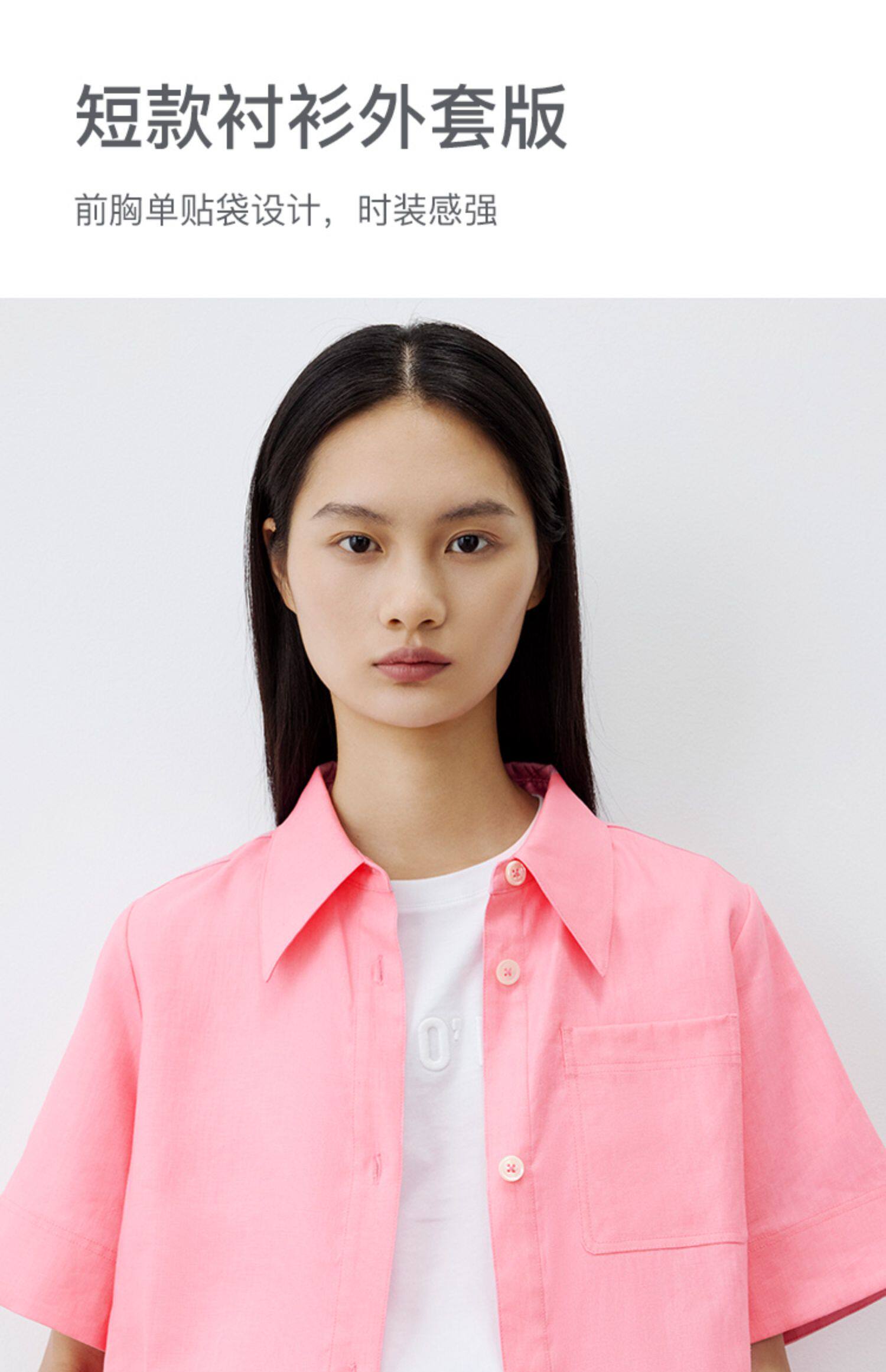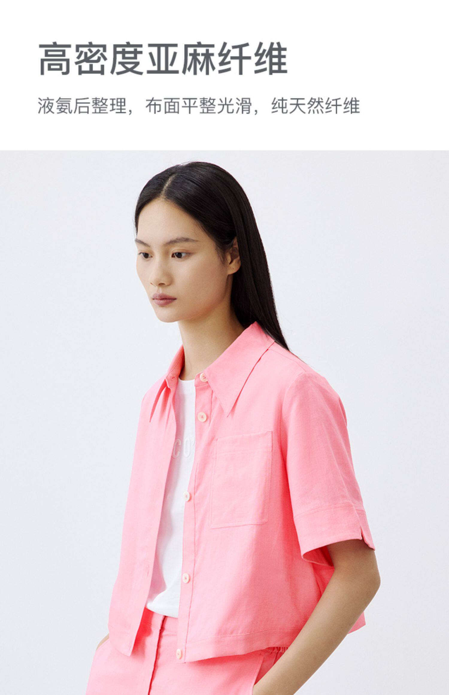 Marc O'Polo/MOP夏季新款好看短款时尚高级感亚麻上衣女短袖衬