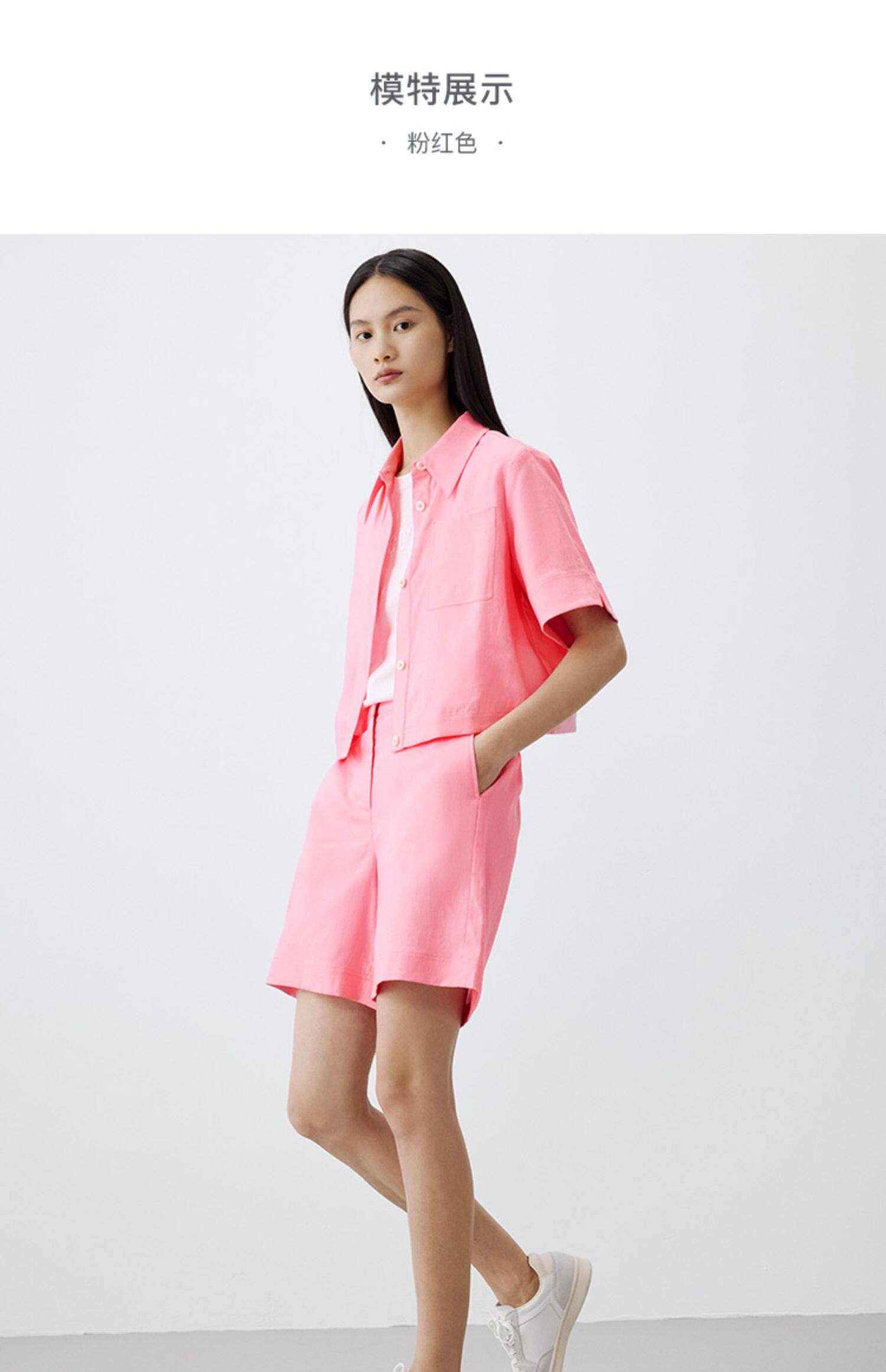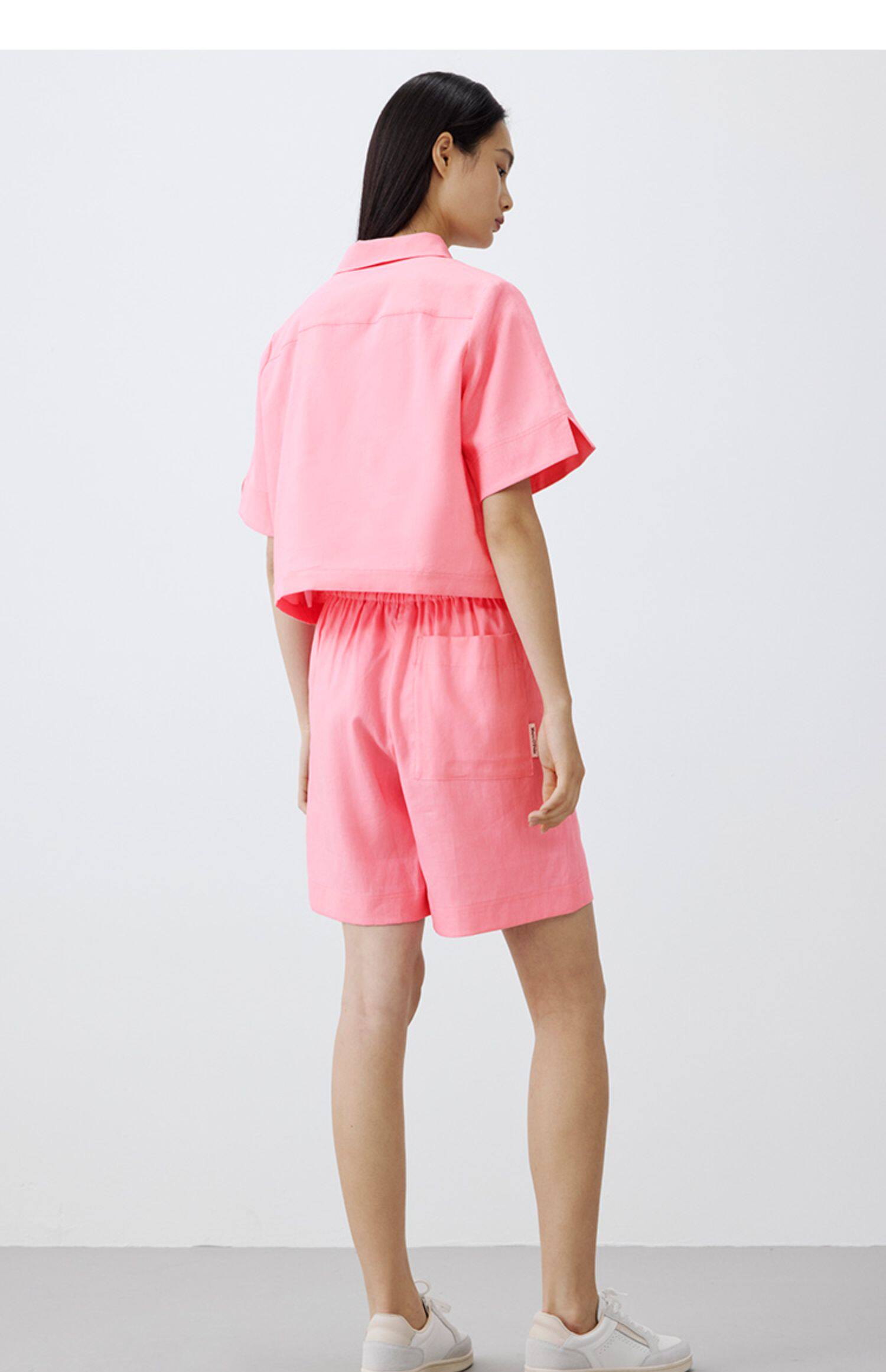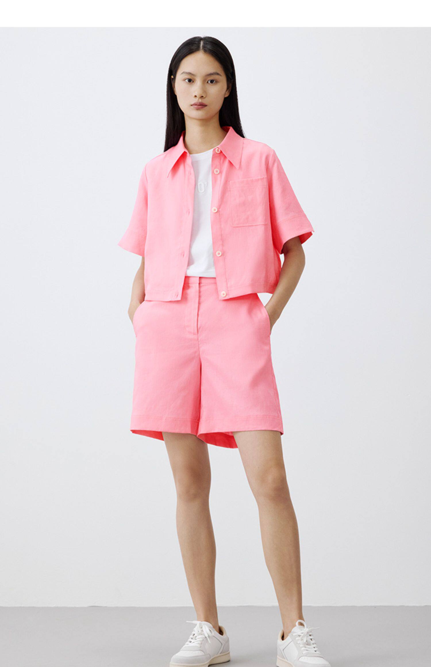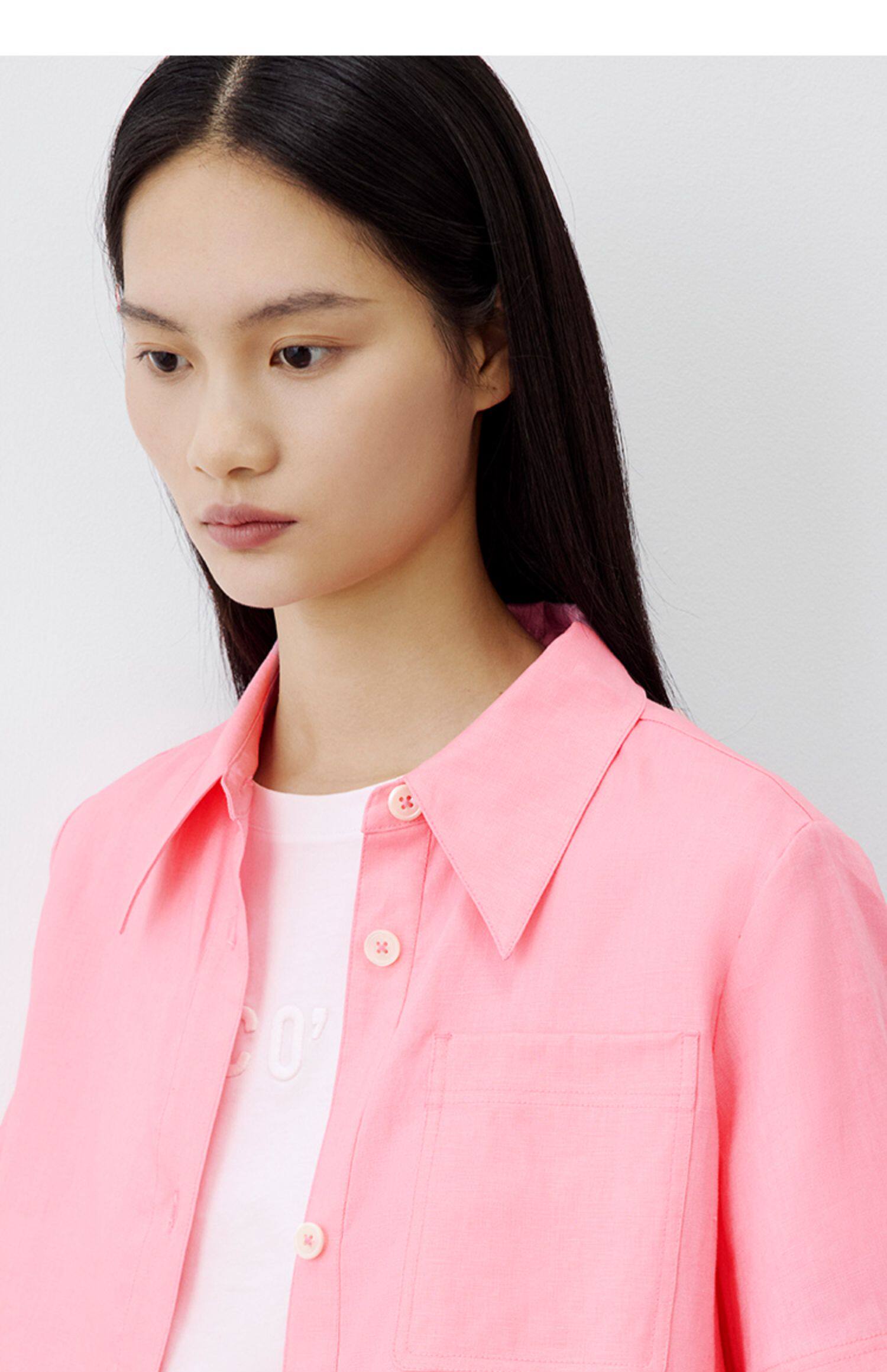 Marc O'Polo/MOP夏季新款好看短款时尚高级感亚麻上衣女短袖衬