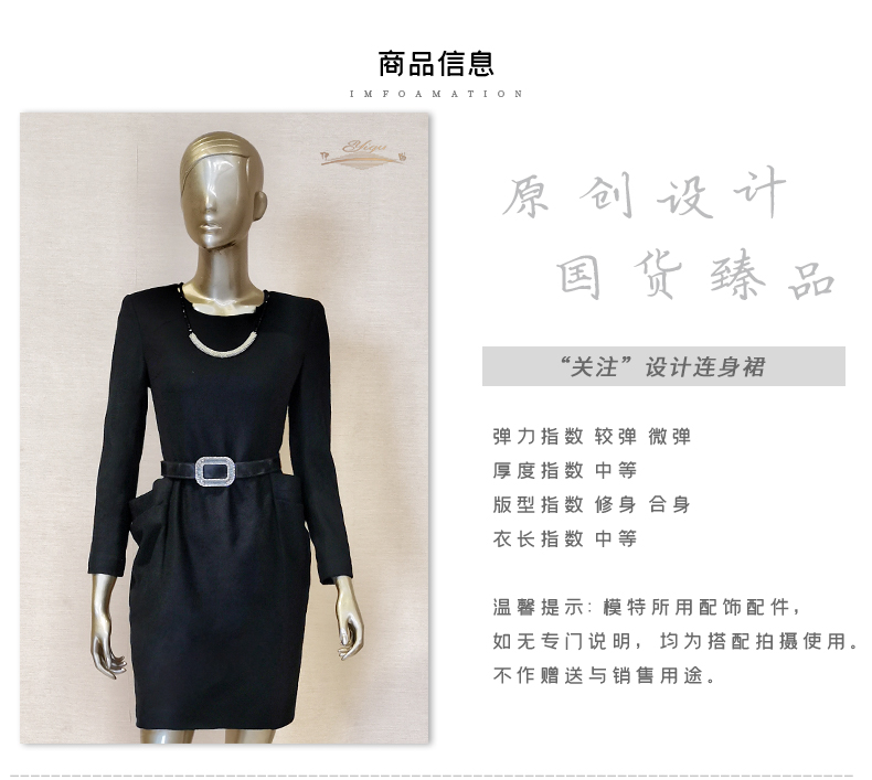 【特惠】YIQU |“关注”连身裙(简黑•含45%羊毛)P