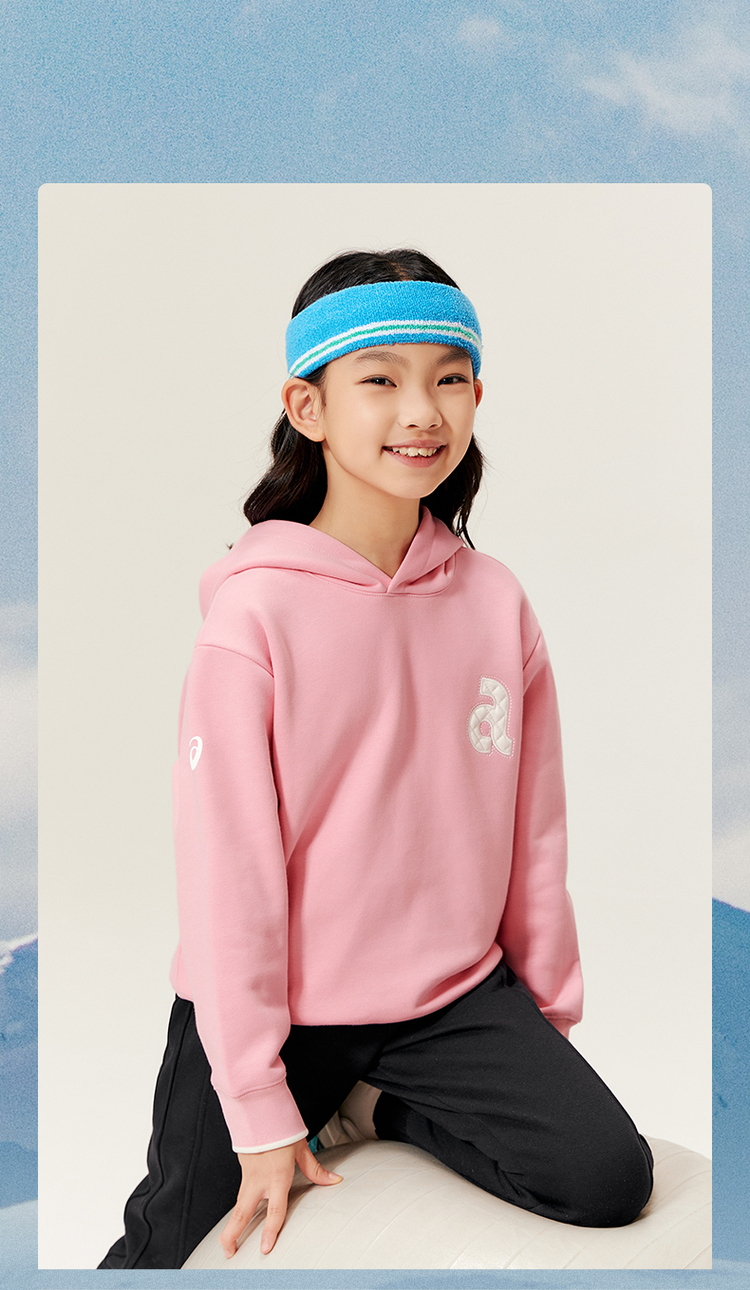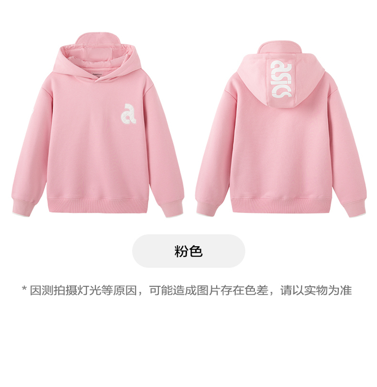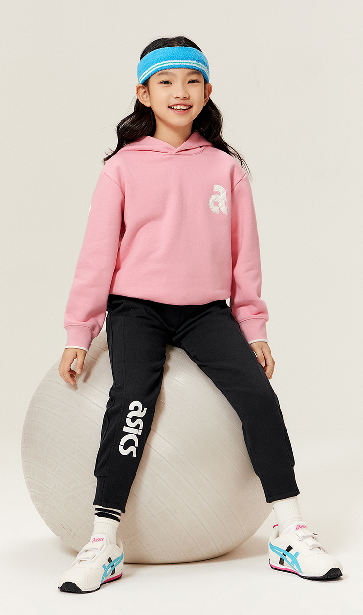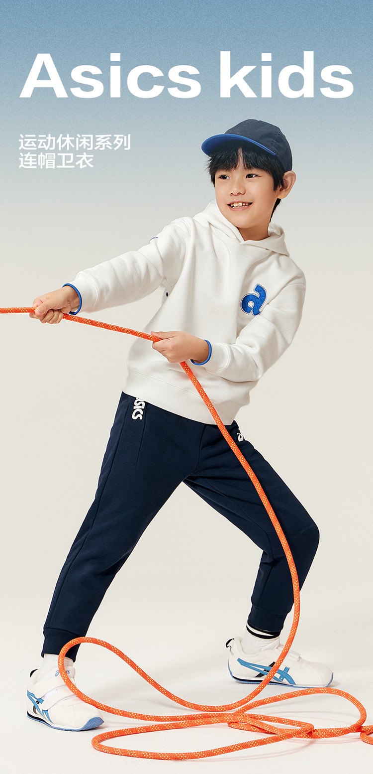 ASICS/亚瑟士童装卫衣2023冬季新款男女儿童保暖加厚运动连帽卫衣