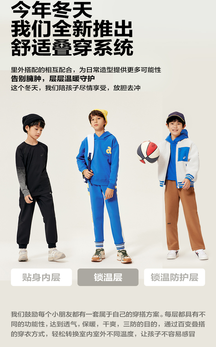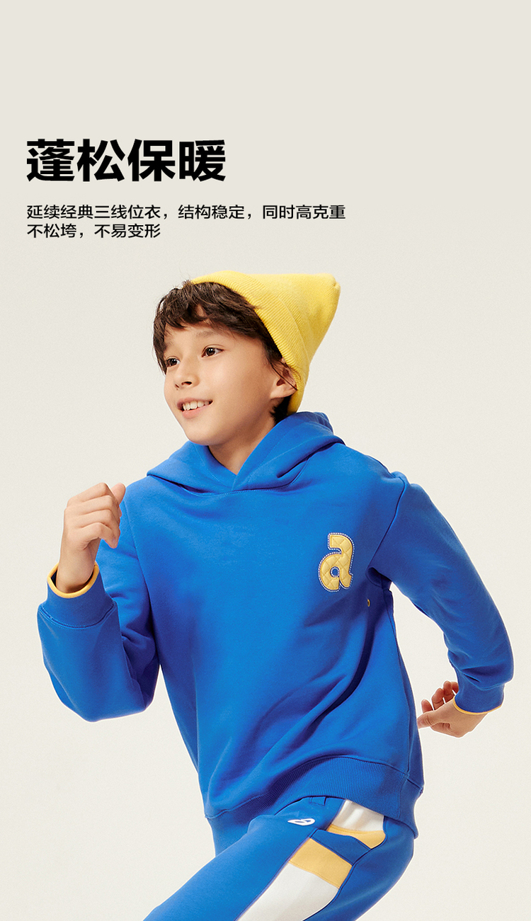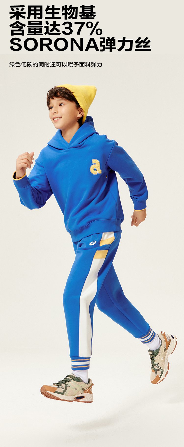 ASICS/亚瑟士童装卫衣2023冬季新款男女儿童保暖加厚运动连帽卫衣