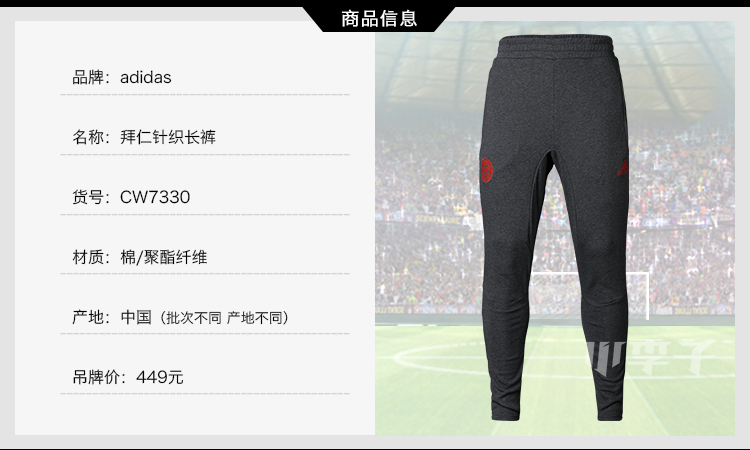 小李子:专柜正品adidas阿迪达斯男子足球运动训练拜仁针织长裤