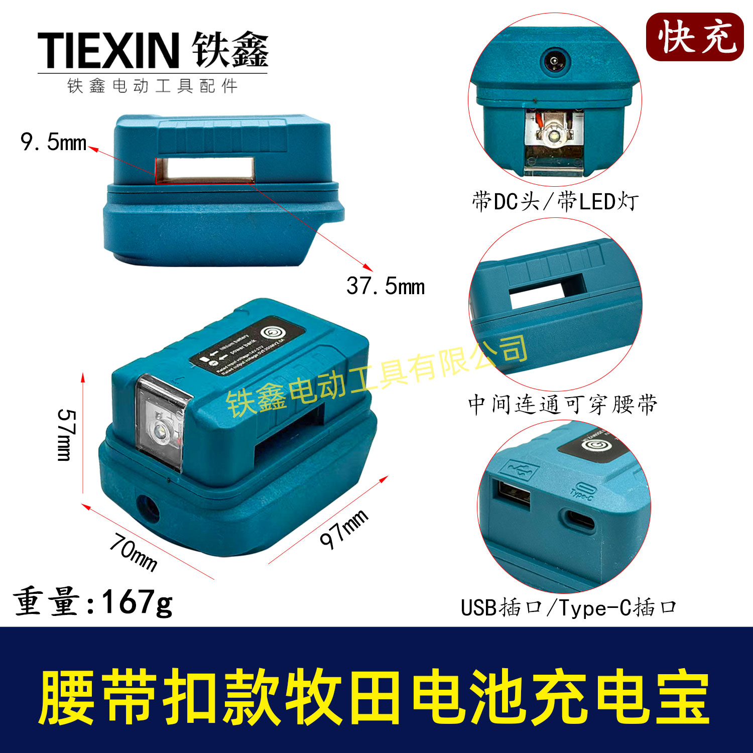 【货号010193】腰带牧田款电池充电宝转换器LED灯锂电池应急手机充电宝USB插口DC头转换