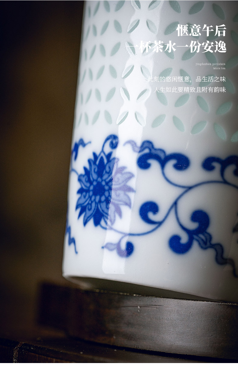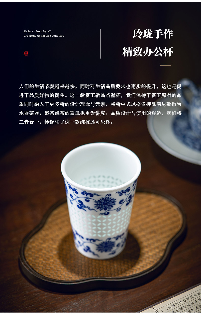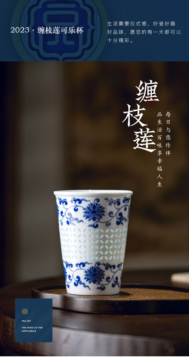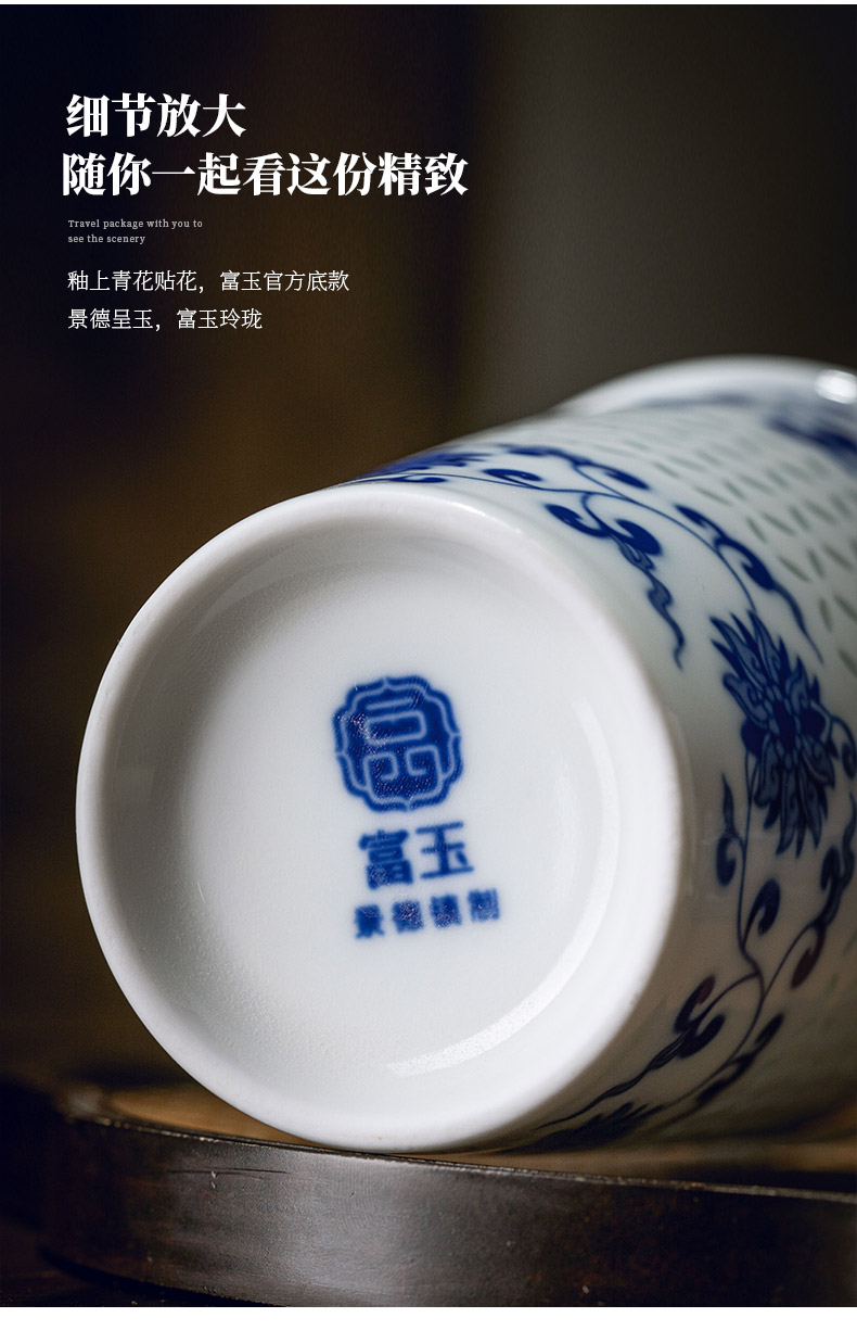 富玉 景德镇青花缠枝莲陶瓷可乐杯 个人专用茶杯水杯礼盒装