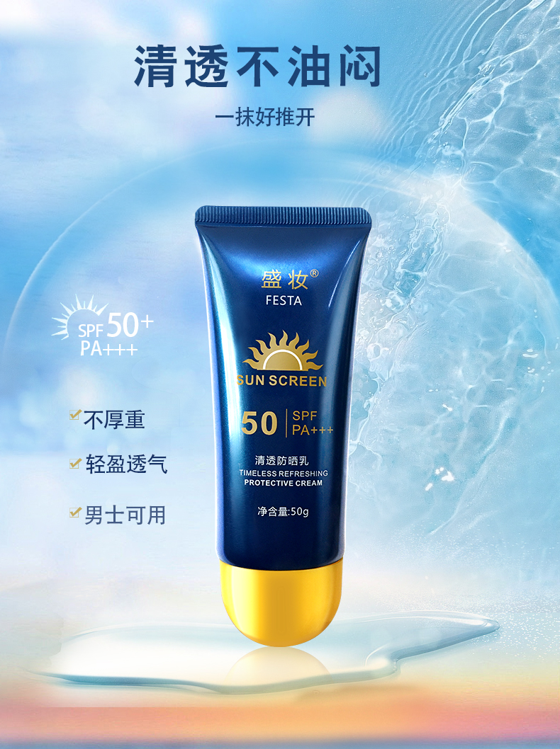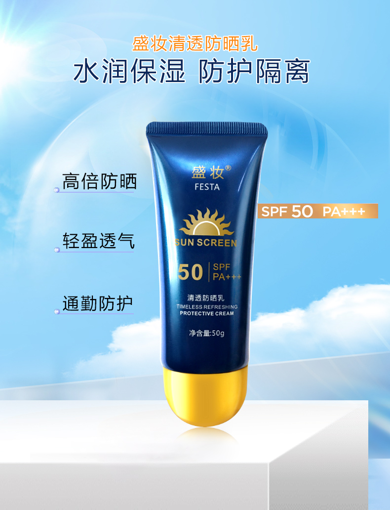 北京盛妆清透防晒乳SPF50PA++++紫外线防护户外防晒霜